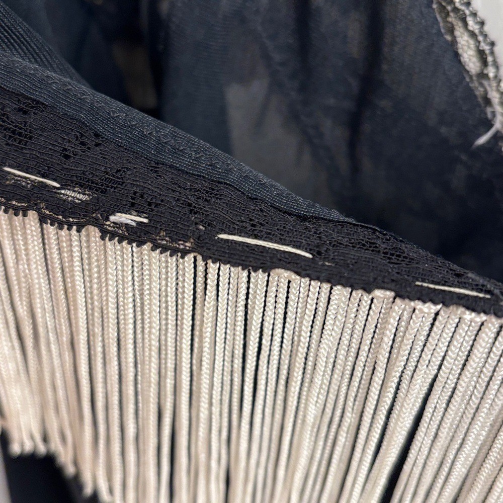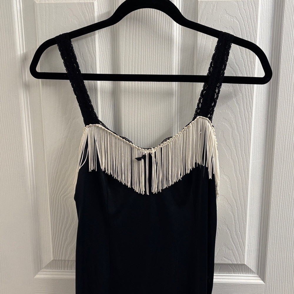 Flapper Style Black Dress Fringe Details- Modified Lingerie Slip Olga Size 36