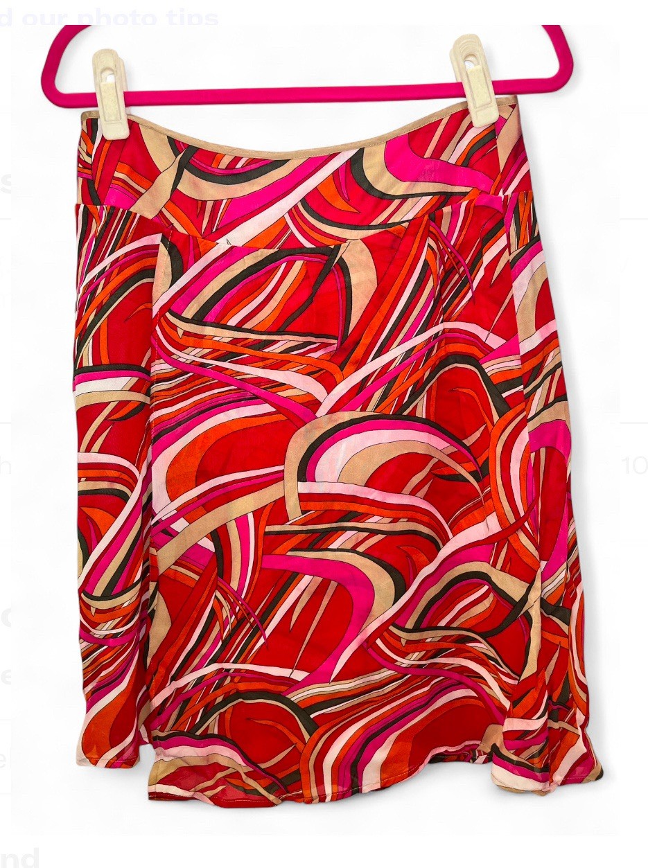 как выглядит Vintage Silk 70s Inspired Colorful Funky Eclectic Swishy Skirt Womens Size 9/10 фото