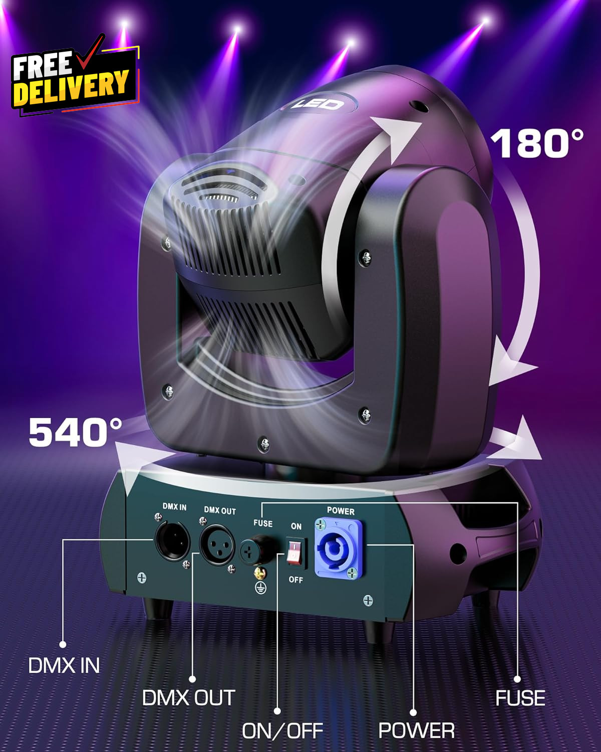120W Moving Head DJ Lights 18-Facet Prism Stage Lighting 8 Gobos and 8 Colors...