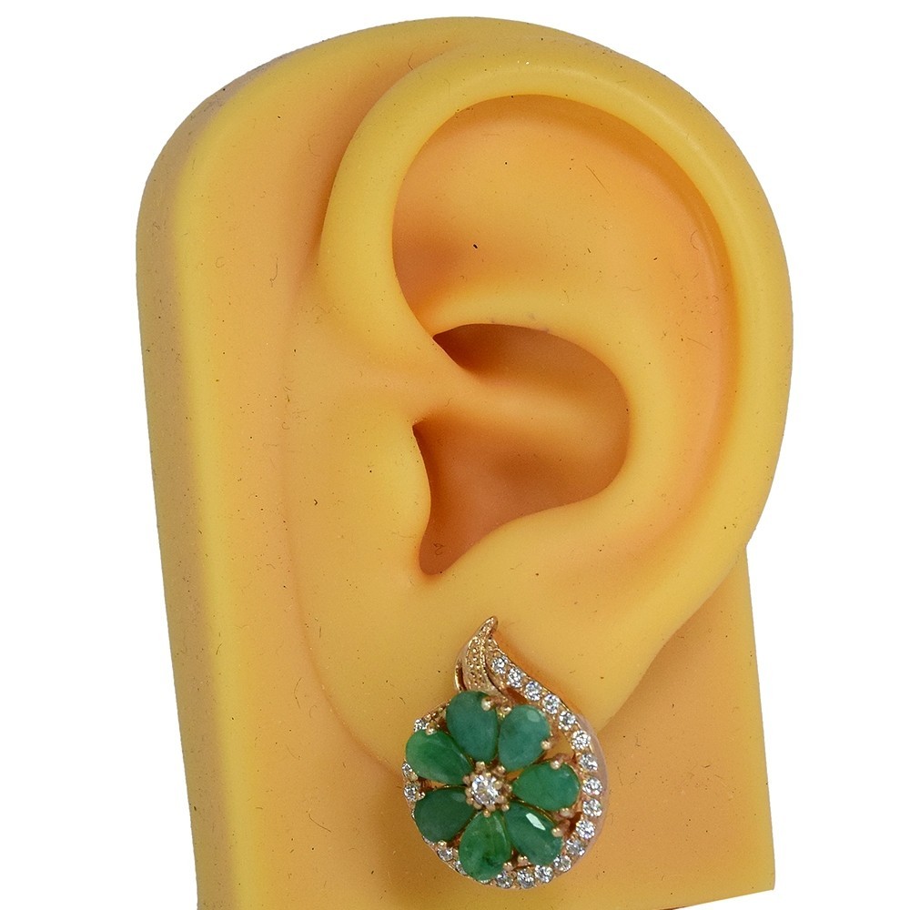 как выглядит NATURAL AAA GREEN EMERALD WHITE CZ STERLING 925 SILVER FLOWER DROP EARRING фото