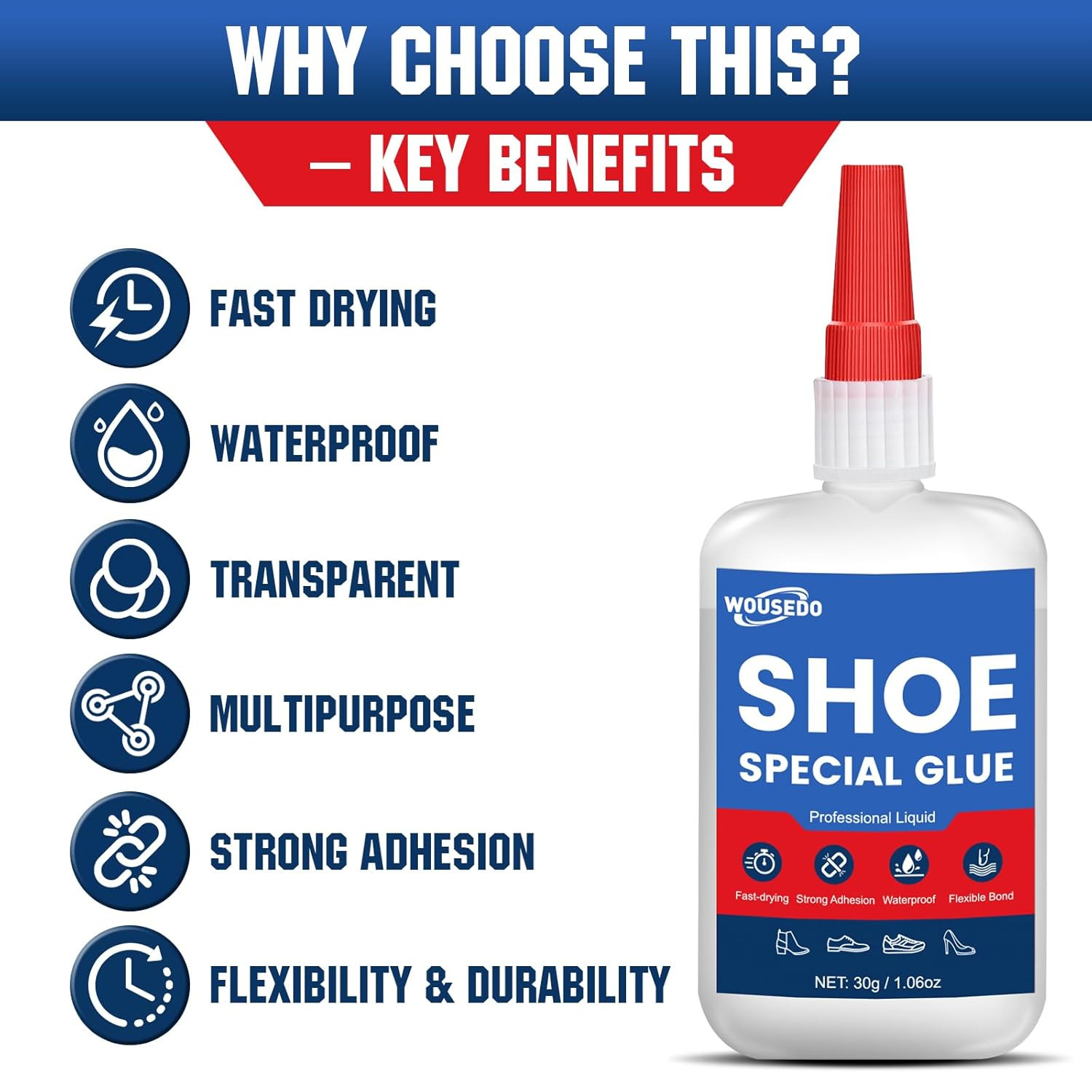 30G X 2 Pcs Shoe Glue - Quick Dry Strong Adhesive for Shoe Repair, Boots, Sneake