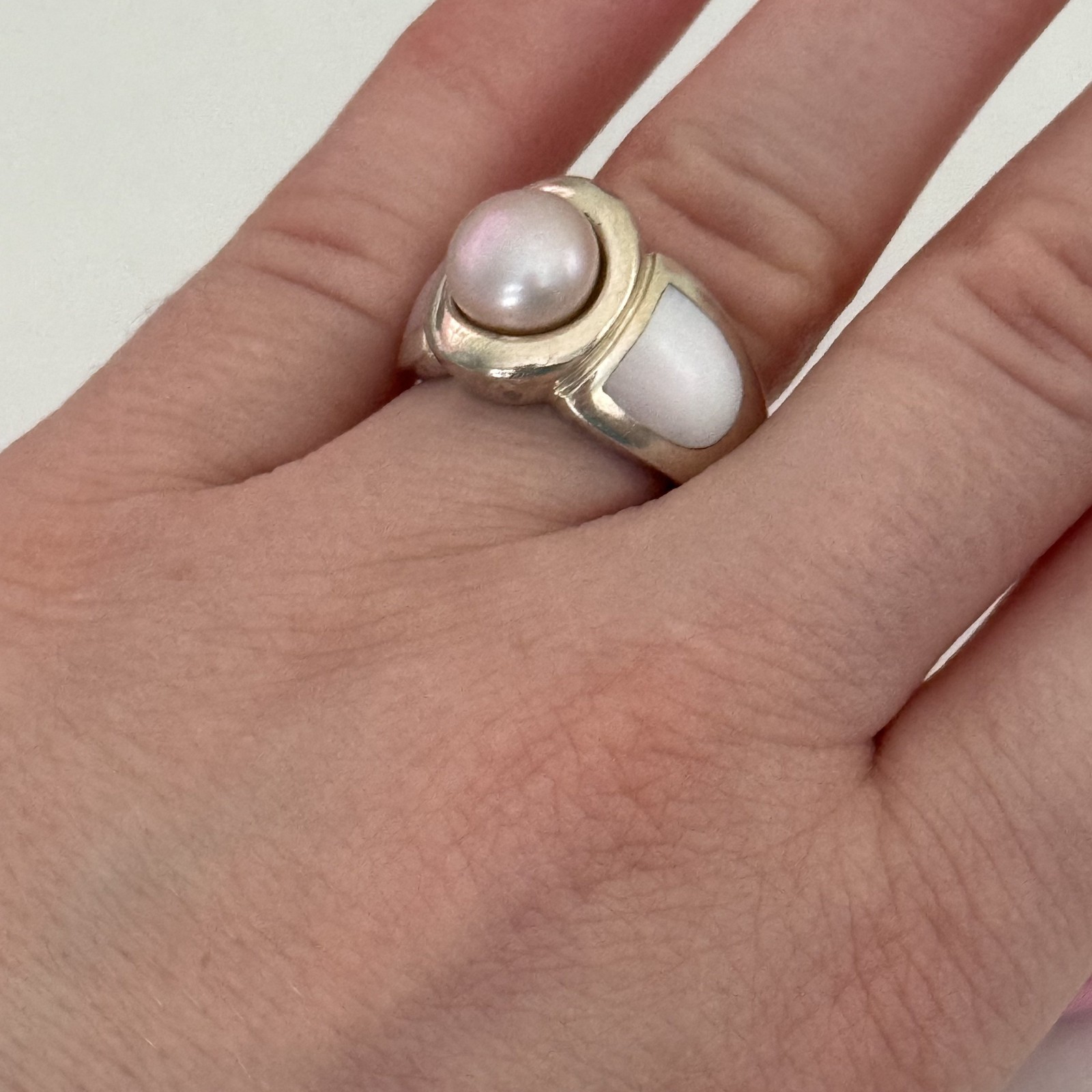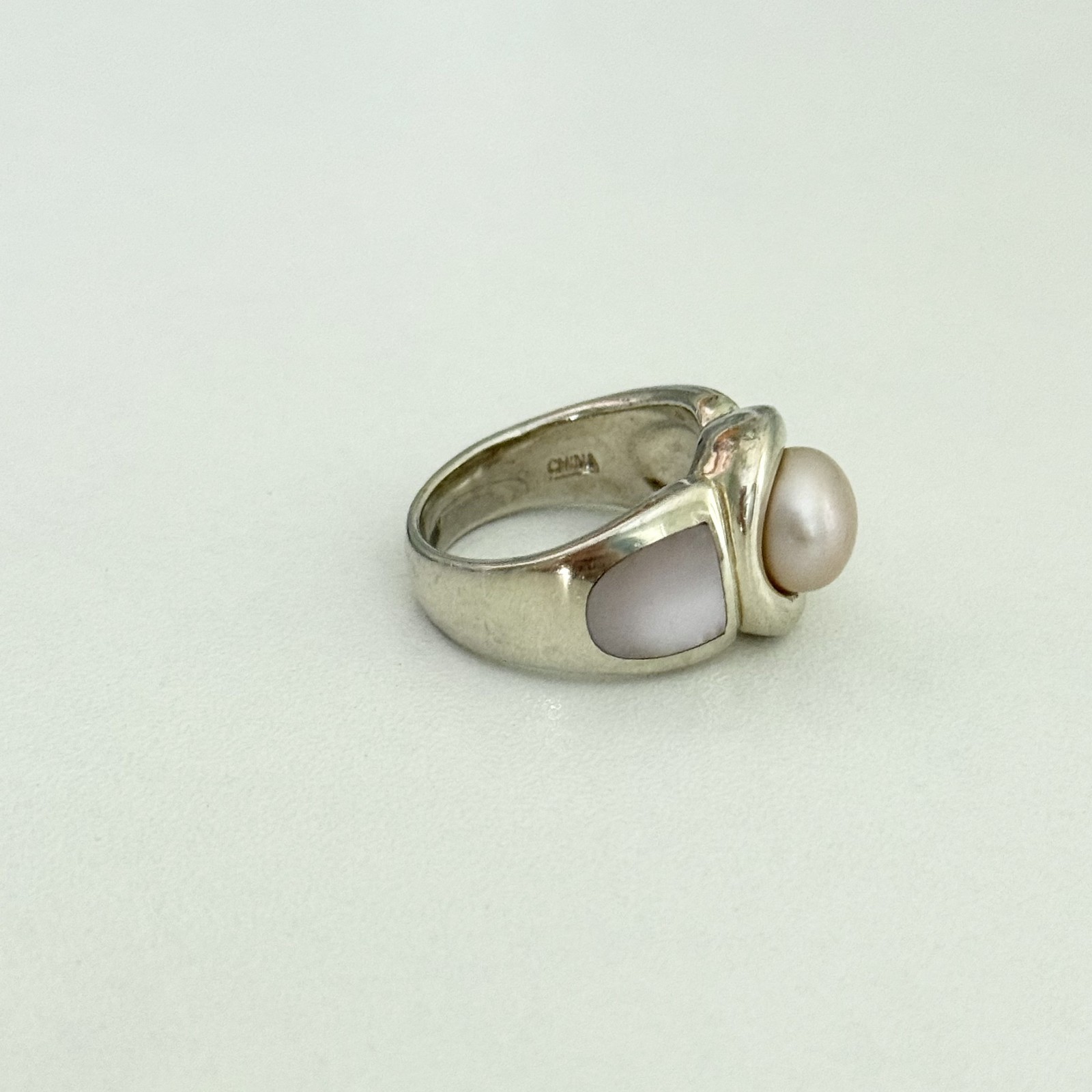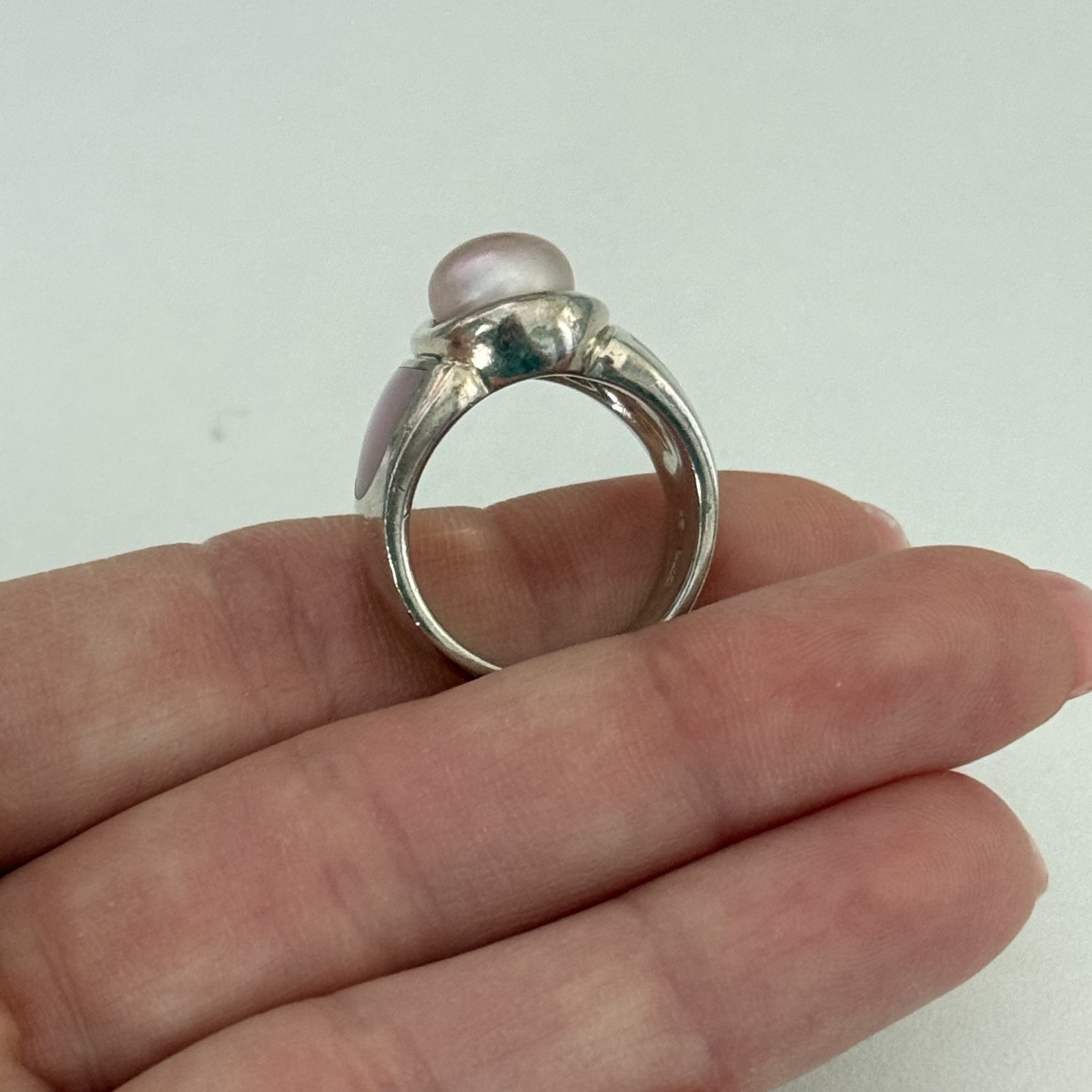 как выглядит Honora 925 Sterling Silver Pink Pearl Mother Of Pearl Chunky Vintage Ring 6.75 фото