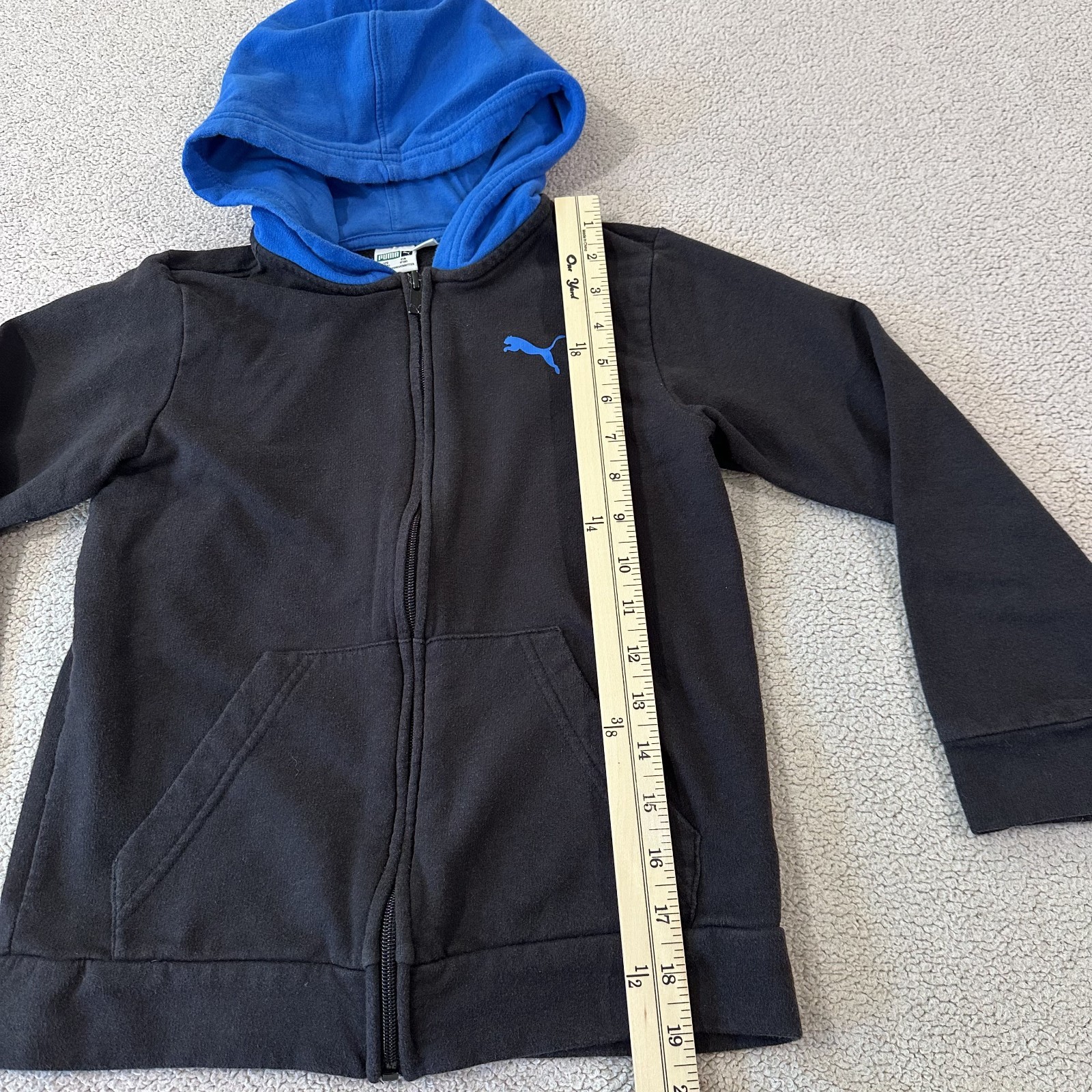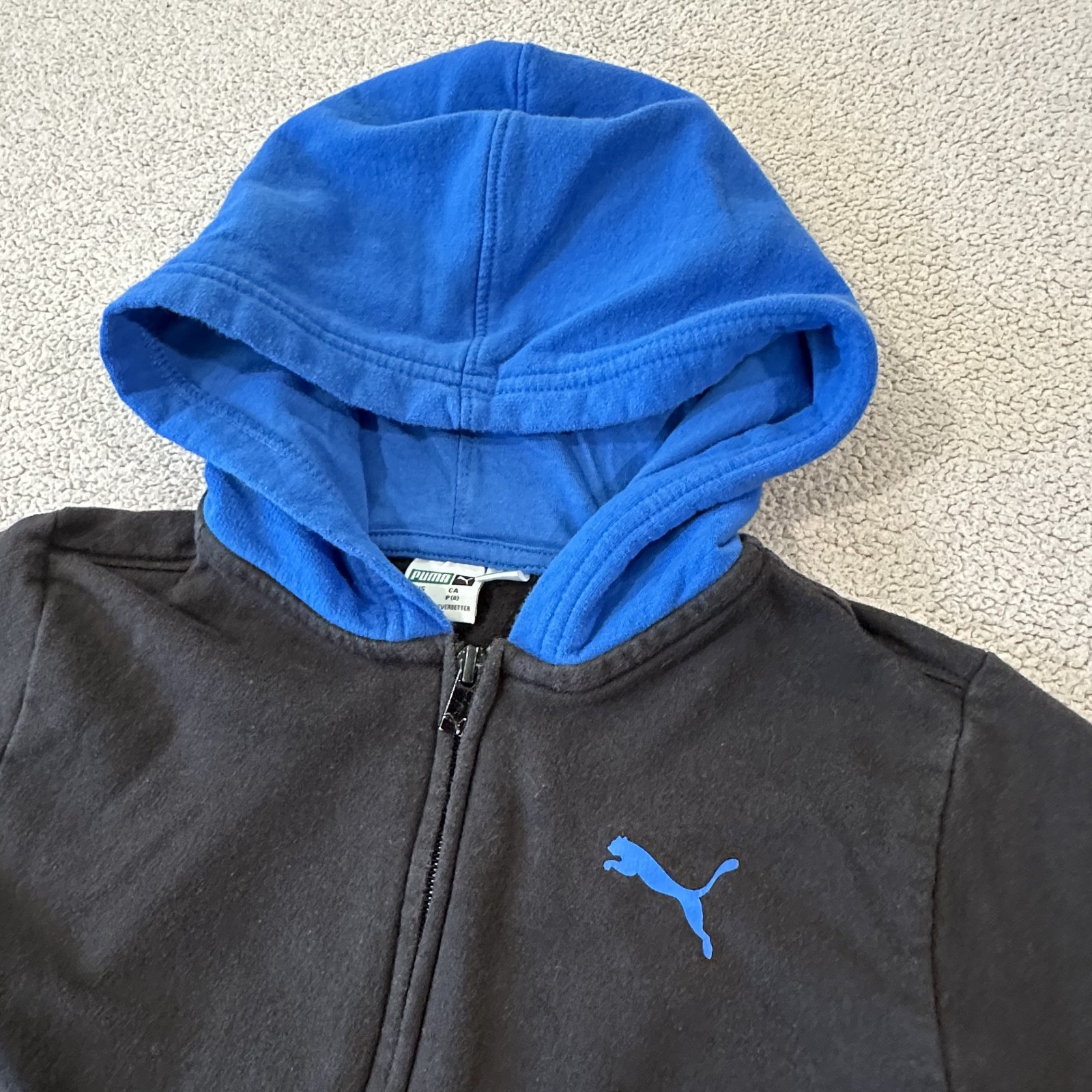 как выглядит Puma Fleece Zippered Hoodie Sweatshirt Puma Logo On Front/Back Kids Size Small 8 фото