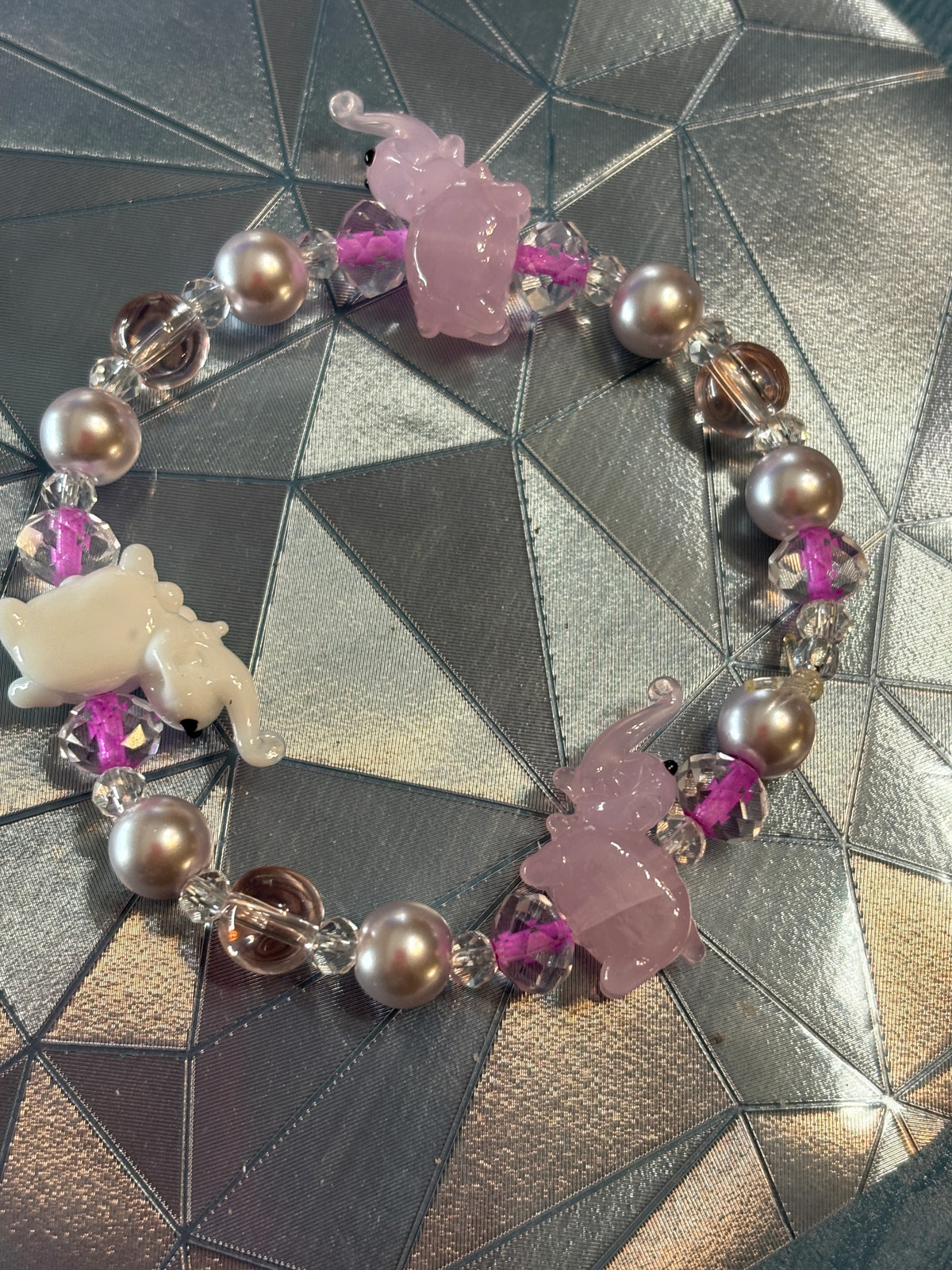 как выглядит Pink White Elephant Beaded Stretch Bracelet фото