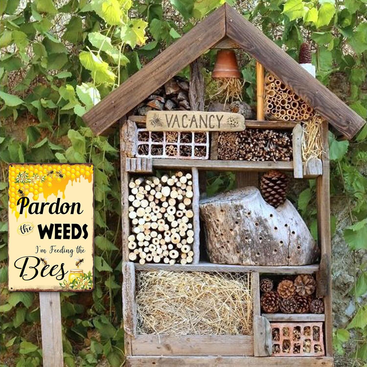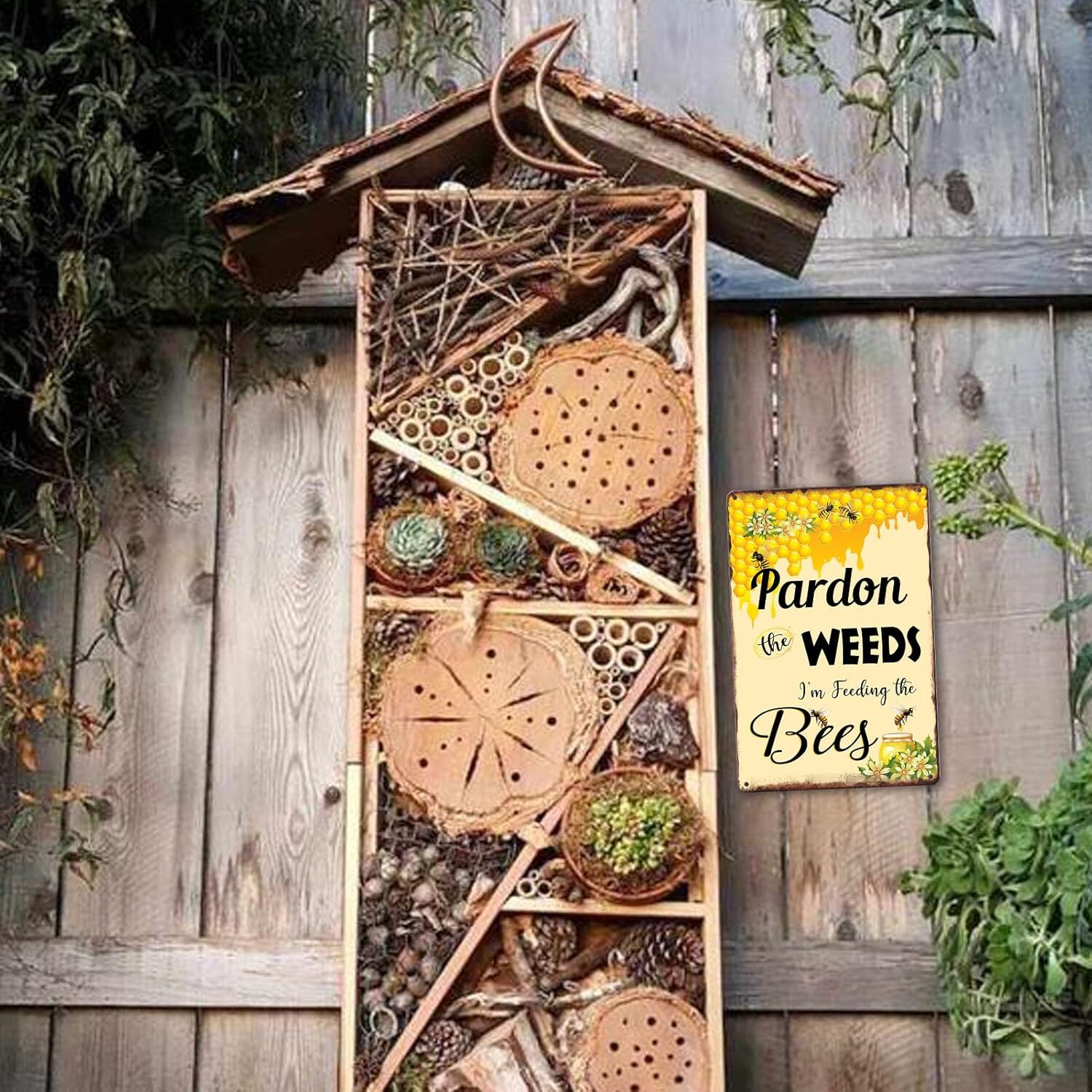 как выглядит Bee Sign Pardon The Weeds Im Feeding The Bees Signs Bee Signs Metal Save The Be фото