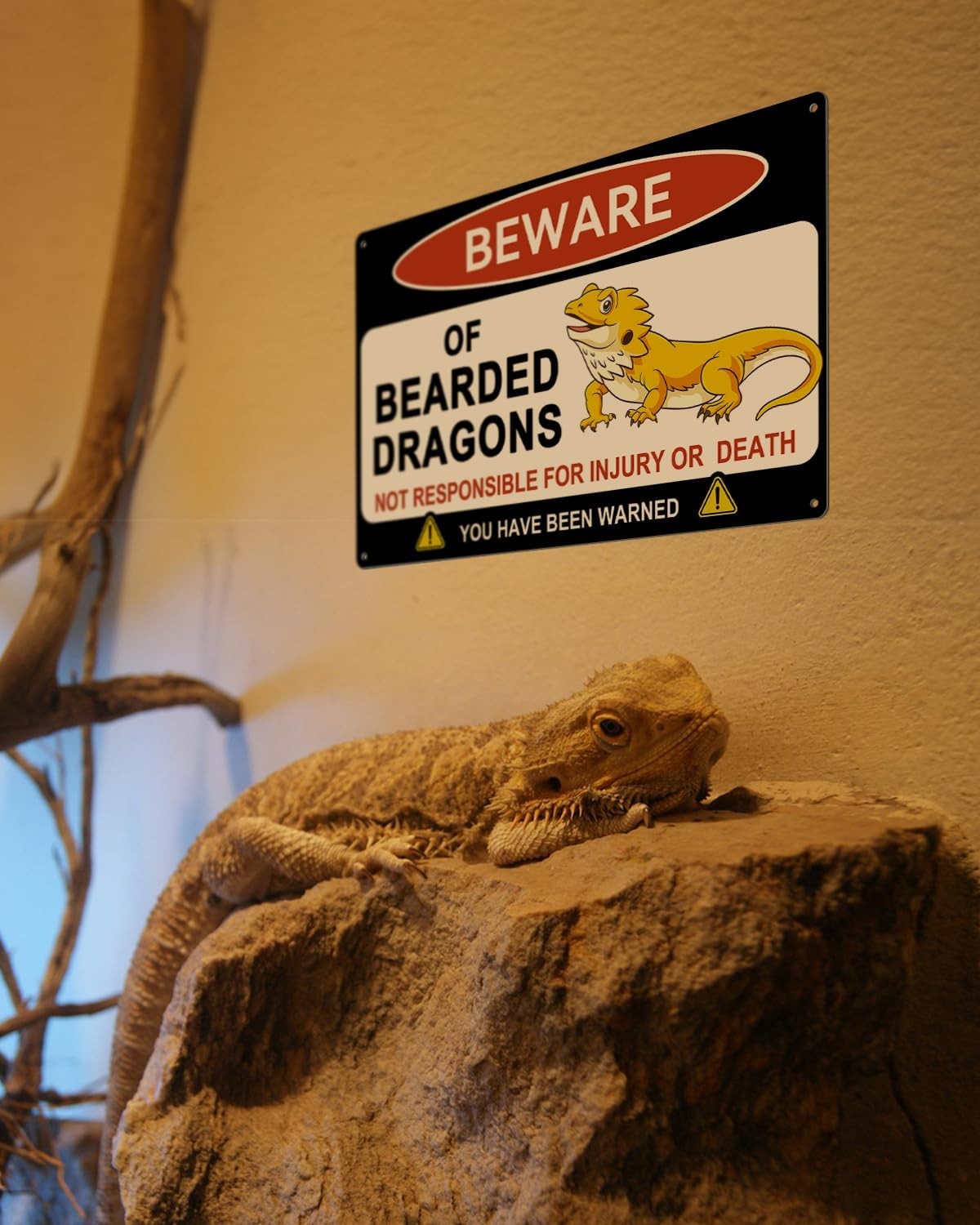 как выглядит Beware of Bearded Dragons Tin Metal Signs for Bearded Dragon Tank Accessories фото