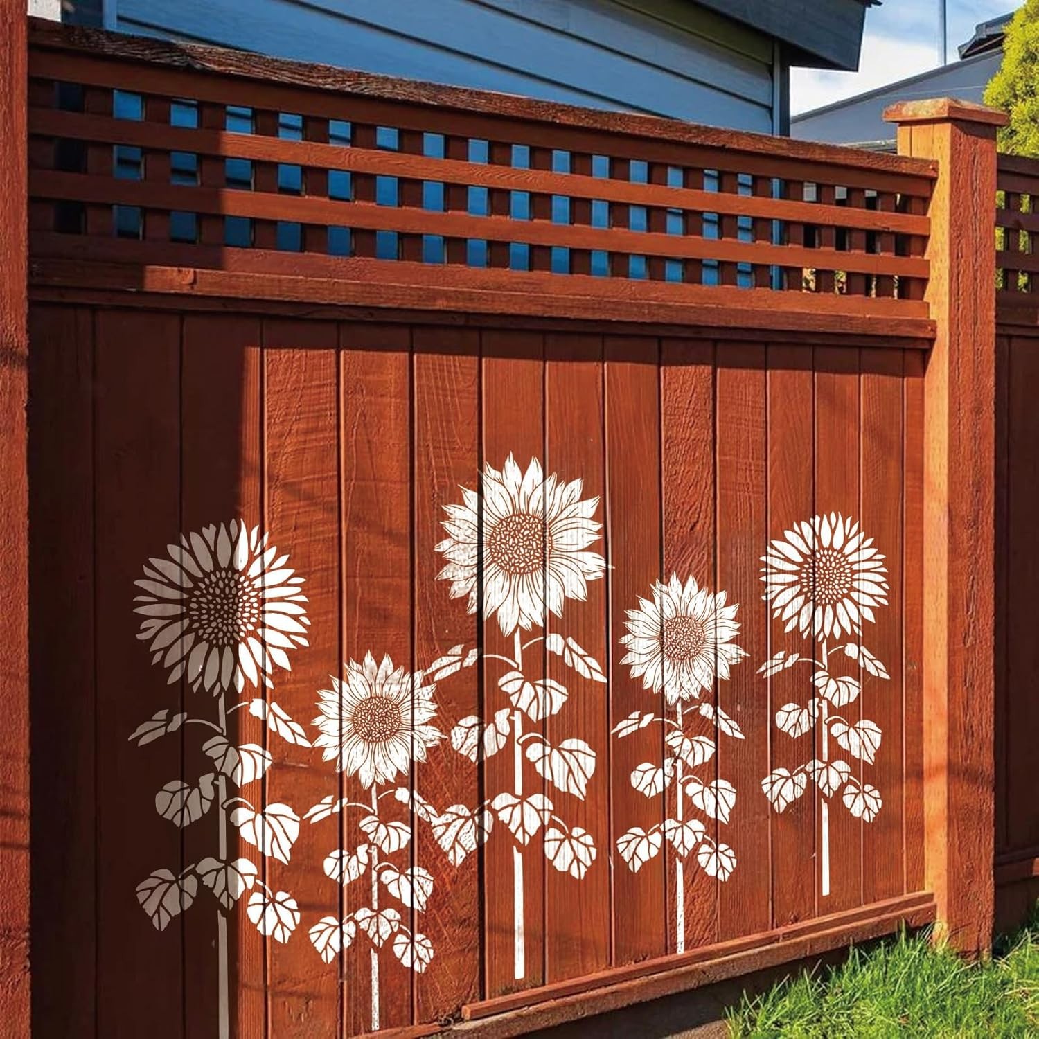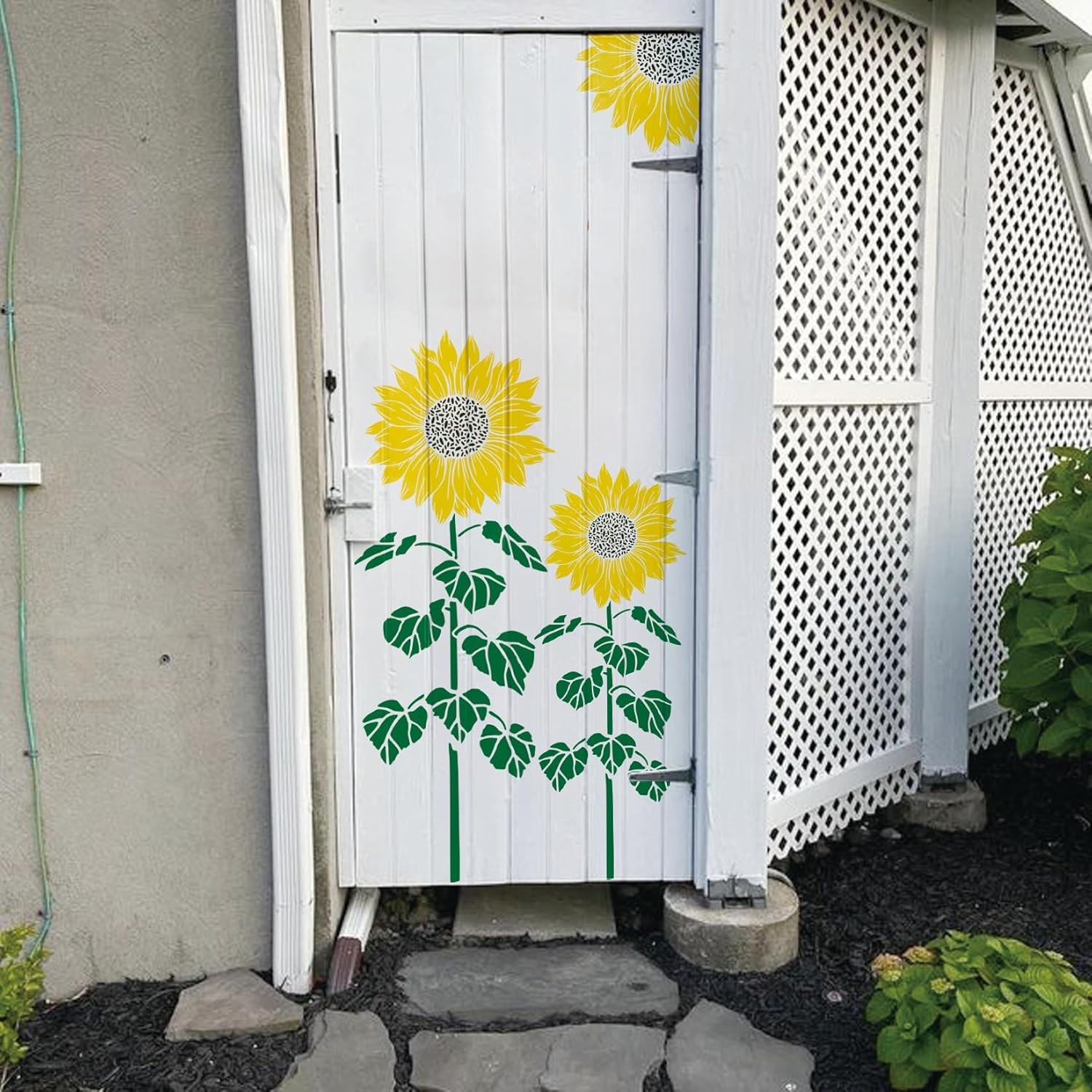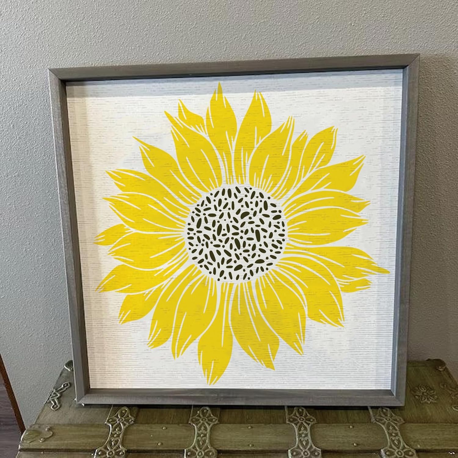 как выглядит 8 Pieces 14 Inch Large Sunflower Stencil for Painting on Wood Reusable white фото