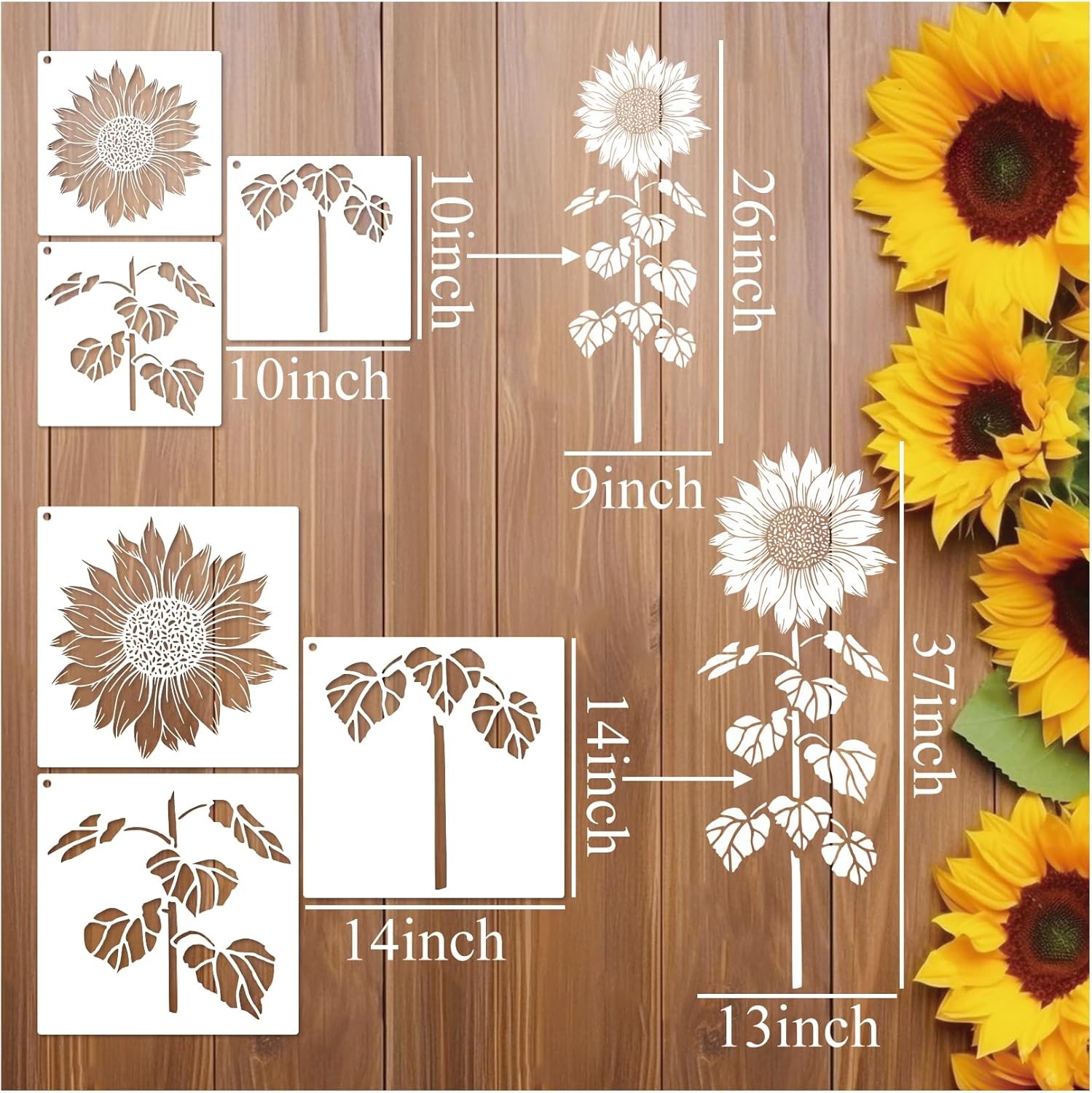 8 Pieces 14 Inch Large Sunflower Stencil for Painting on Wood Reusable white