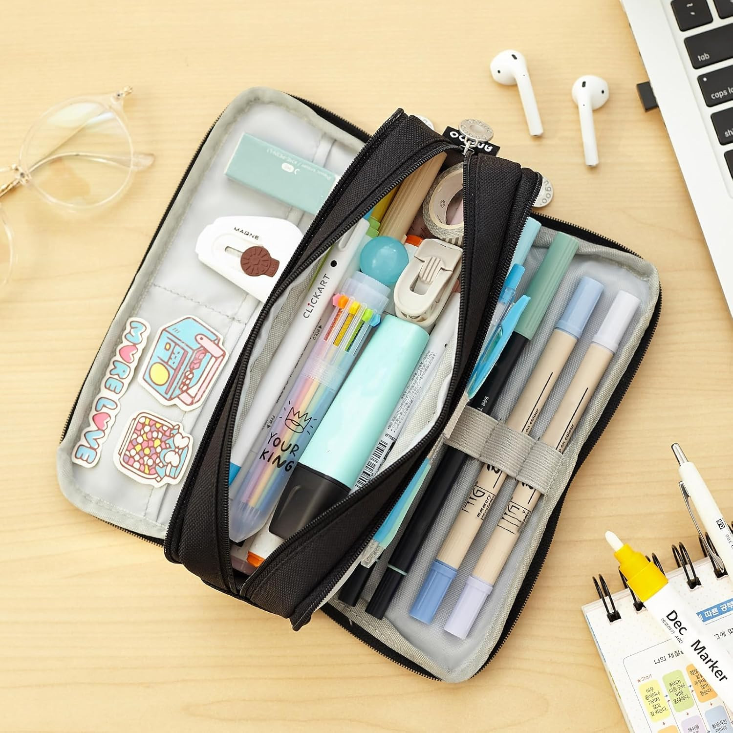 Large Capacity Pencil Case 3 Compartment Pouch Pen Bag for School Teen Girl Boy
