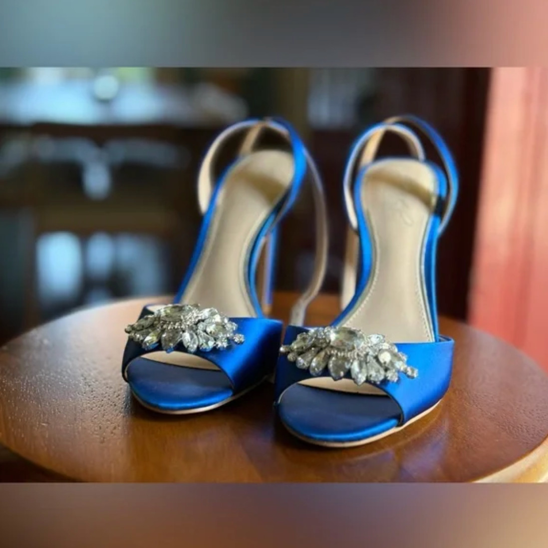 180 Jewel Badgley Mischka Jessa Royal Blue Satin Crystal Heels Wedding Shoes