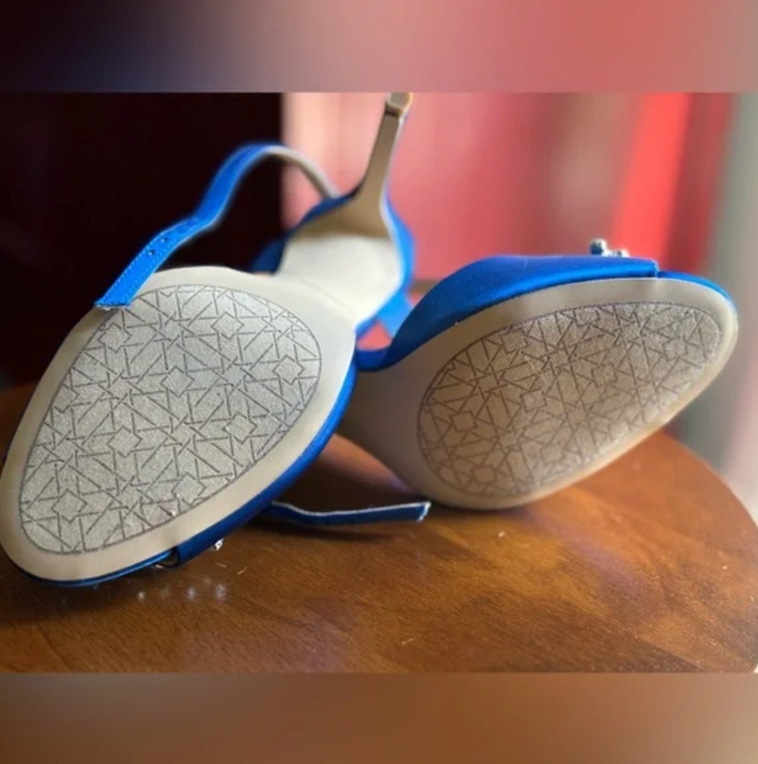 как выглядит 180 Jewel Badgley Mischka Jessa Royal Blue Satin Crystal Heels Wedding Shoes фото