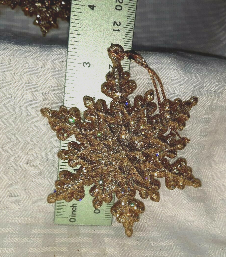 как выглядит Dazzling Snowflakes Ornaments -Glittery Gold 3D - Reflects colors Set of 5 фото