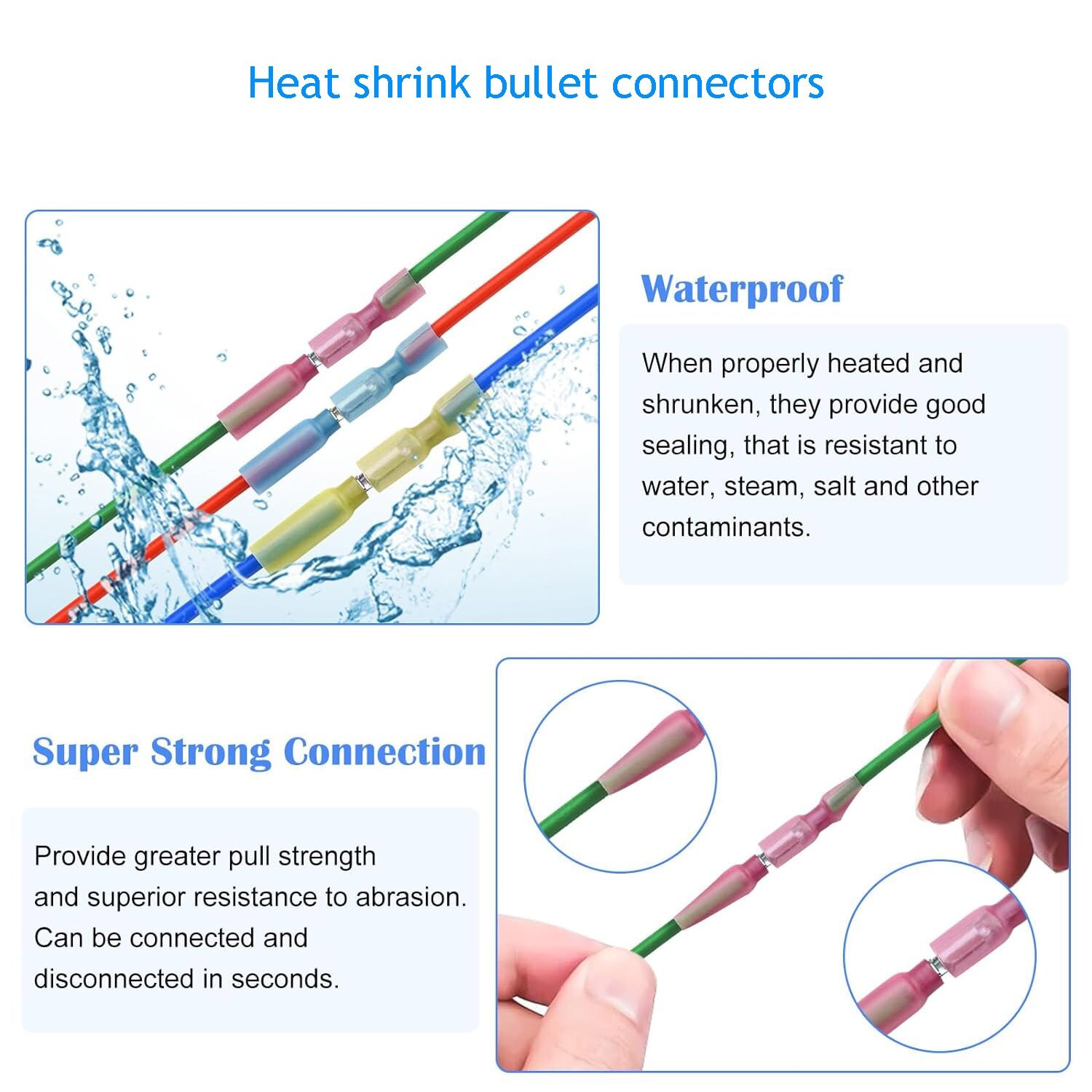 200x Heat Shrink Bullet Wire Connectors 22-10AWG Male Female Crimp Terminals kit