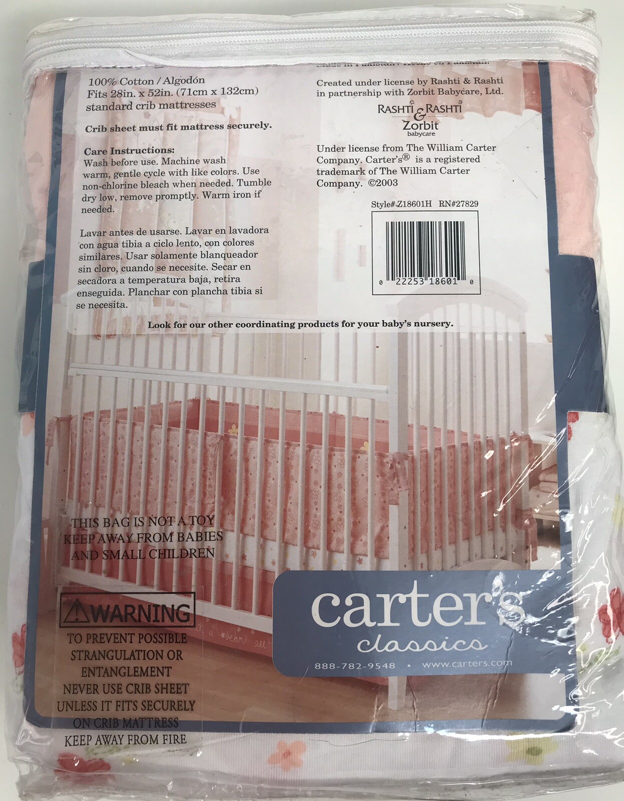 Carter s Classics Cotton Crib Sheets Flowers Pink Coral Z18601H 2003 NEW