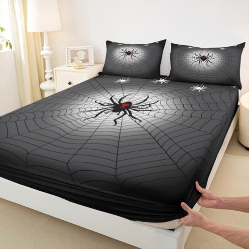 Black Spider Kids Sheet Queen Size,Spider Web QUEEN W60 L80 H16 Multi 05
