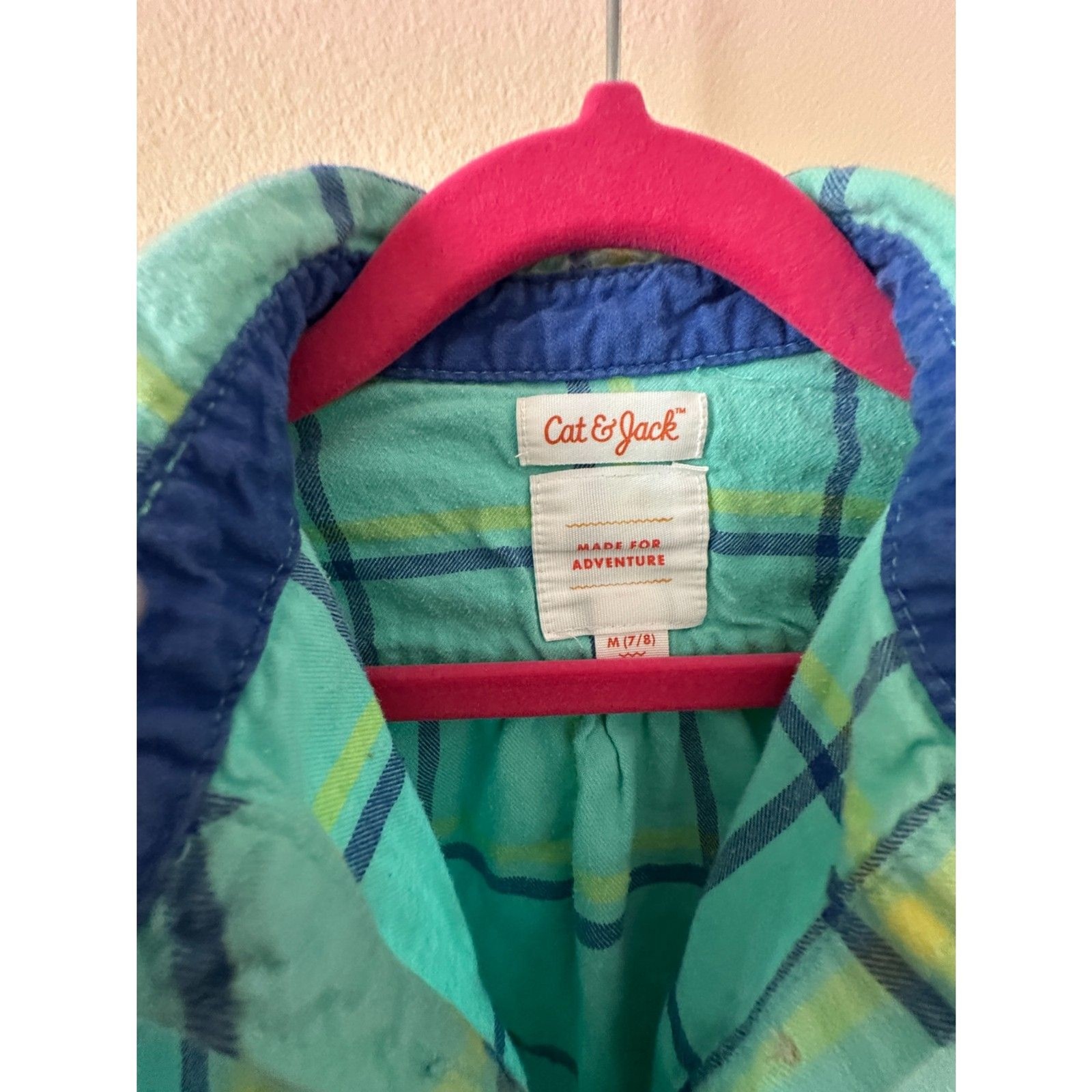 как выглядит Cat and Jack Girls Blue and Green Plaid Flannel Button Down Shirt Size M VGUC фото
