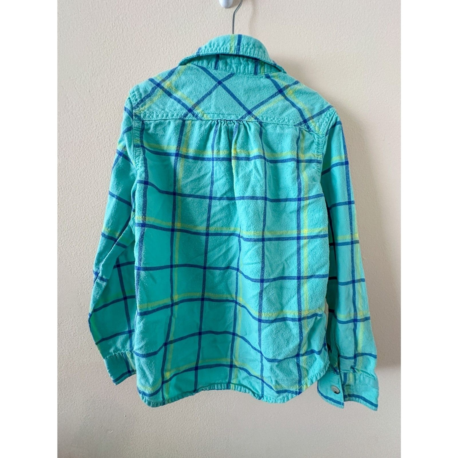 Cat and Jack Girls Blue and Green Plaid Flannel Button Down Shirt Size M VGUC