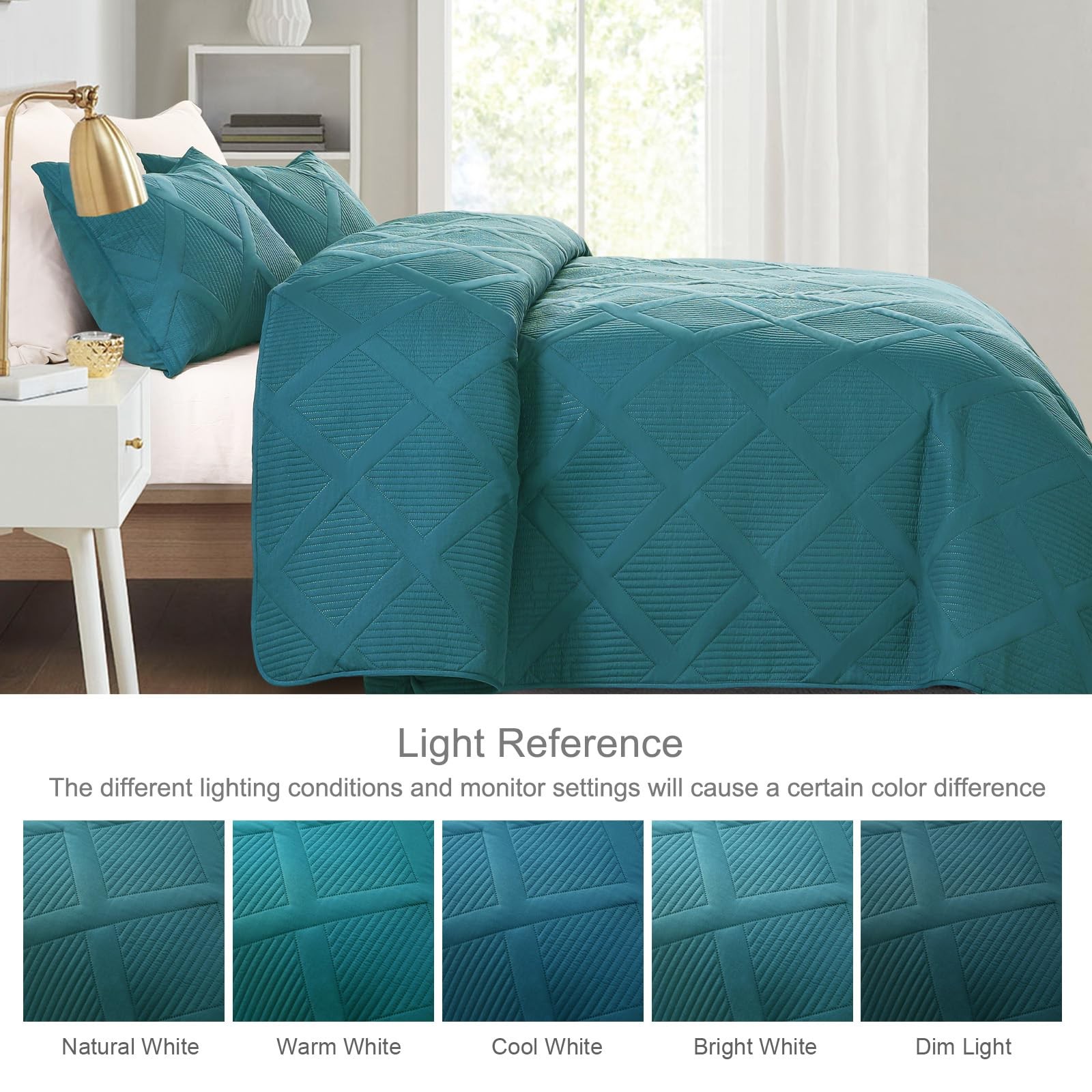 как выглядит Exclusivo Mezcla Quilt Set Queen Size, Soft Modern Striped Teal Full Bedding фото