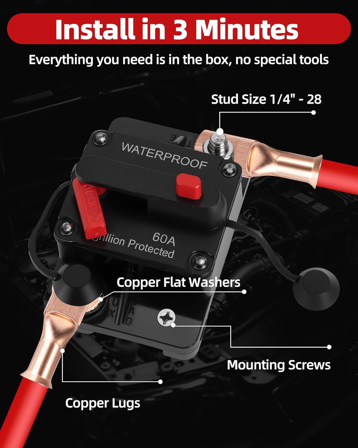 60 Amp Marine Circuit Breaker Switch for Trolling Motor Battery Box, Premium 12V