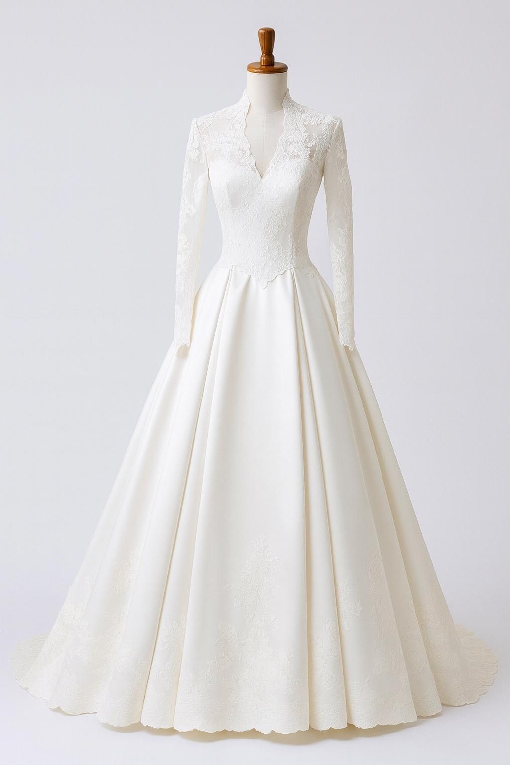 как выглядит Elegant Wedding Dresses Long Sleeves White A Line V Neck Ivory Satin Brida Gowns фото