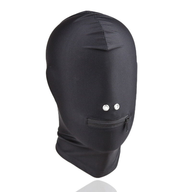 Bondage Unisex Head Hood Mask Blindfold Face Cover Zipper Open Mouth Headgear SM