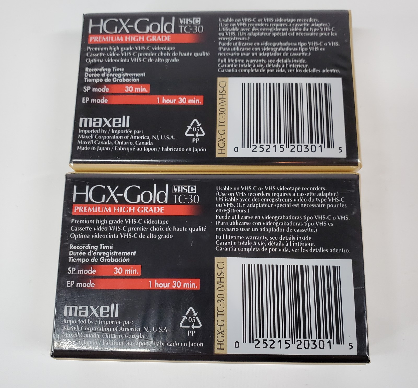 Lot Of 2 Maxell TC-30 VHS-C Premium High Grade HGX-GOLD Camcorder Videocassette