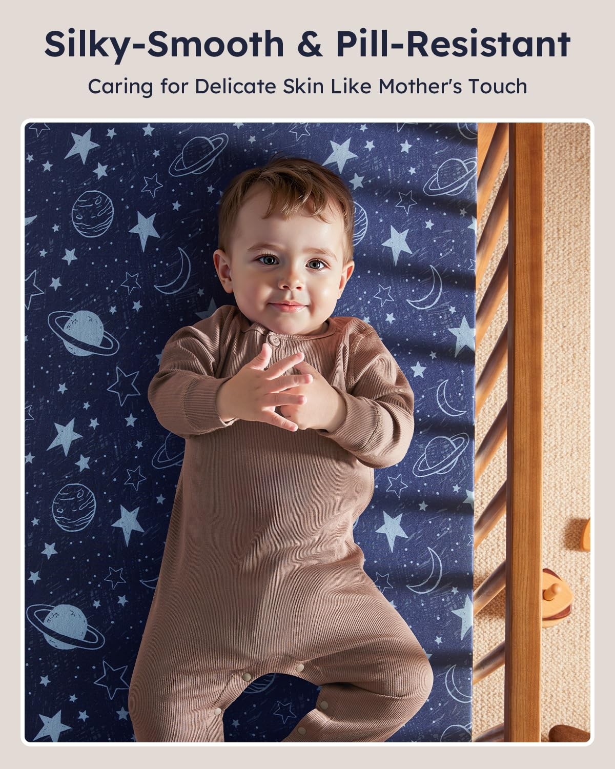 Pack and Play Sheets Fitted 3 Pack, Mini Crib Sheets for Pack N Play Mattress...