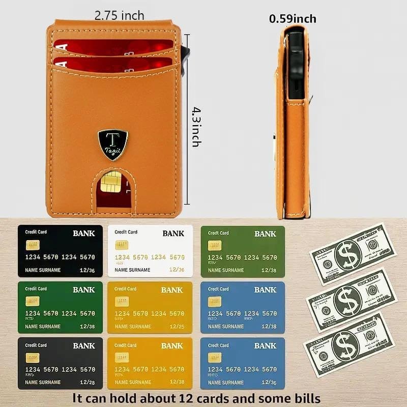 RFID Blocking Pop-Up Leather Men s Wallet Slim Bifold with Money Clip Gift-Ready