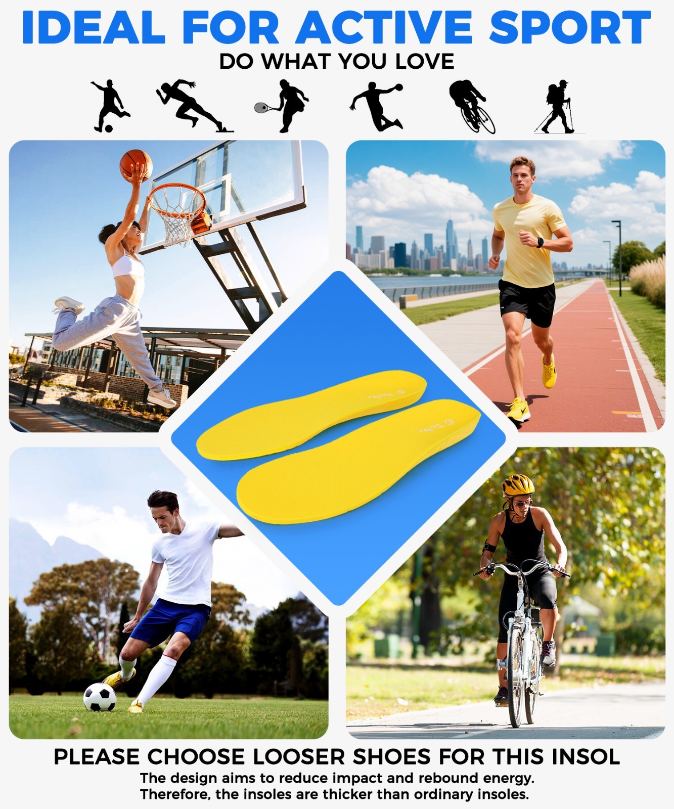 Sport Running Cushioned Insole for Flat Feet: Foot Pain,Moisture Wicking,Plantar Fasciitis,Weight Distribution
