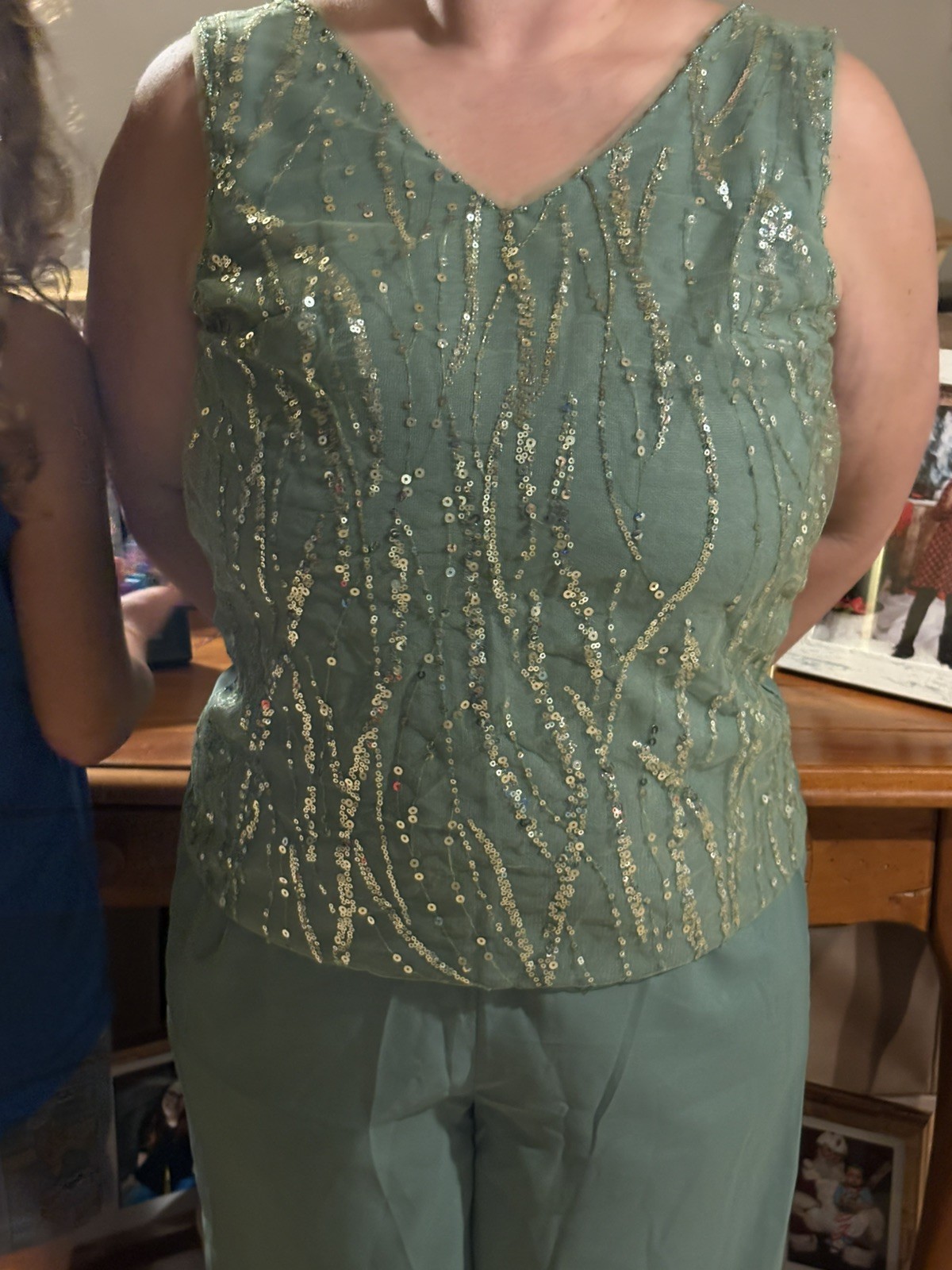 как выглядит 3 Pieces Chiffon Formal Pant Suit Sequin with Jacket Size Medium фото