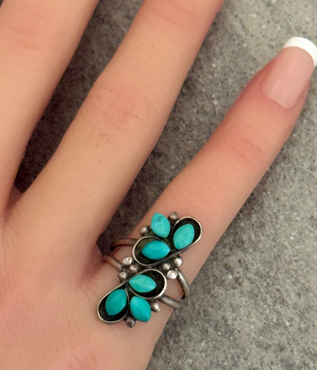 Vintage Native American Navajo Turquoise Cluster Sterling Silver Ring Size 5