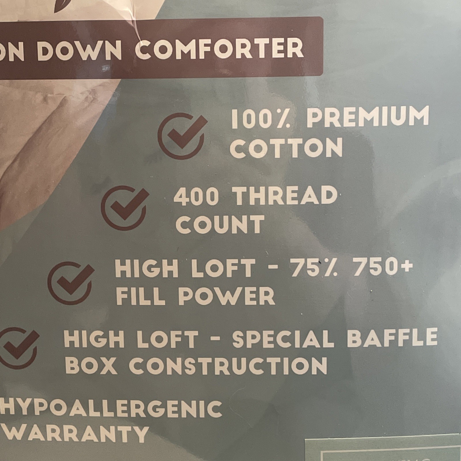 Cozy Feather Cal King Down Comforter White 750 Fill Baffle All Season Cotton 400