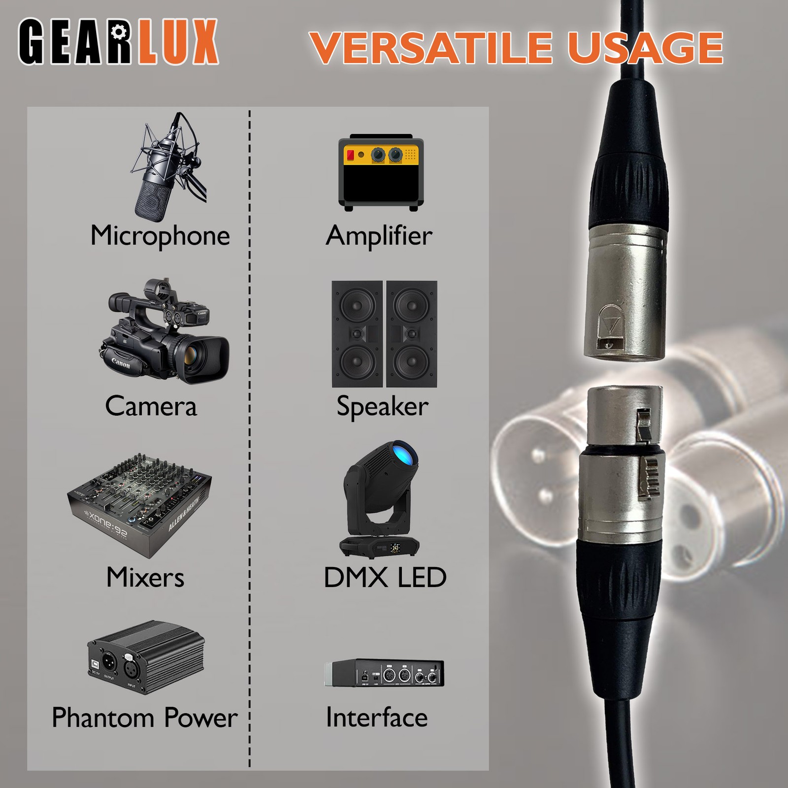 Gearlux 15-Foot XLR Microphone Cable - 6 Pack