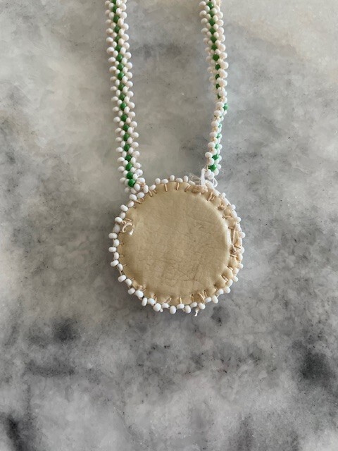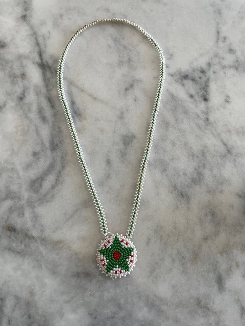 Vintage Native American Beaded Medallion Circle Necklace Green Star