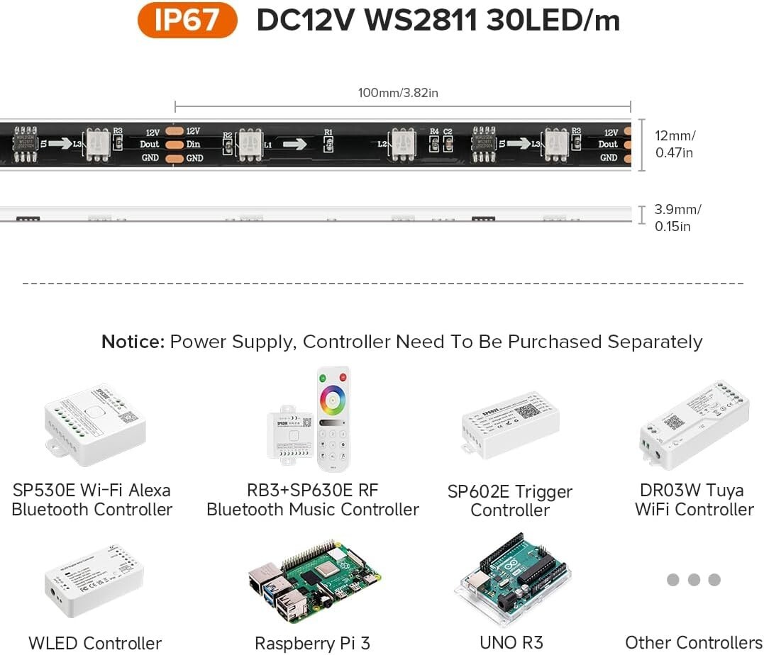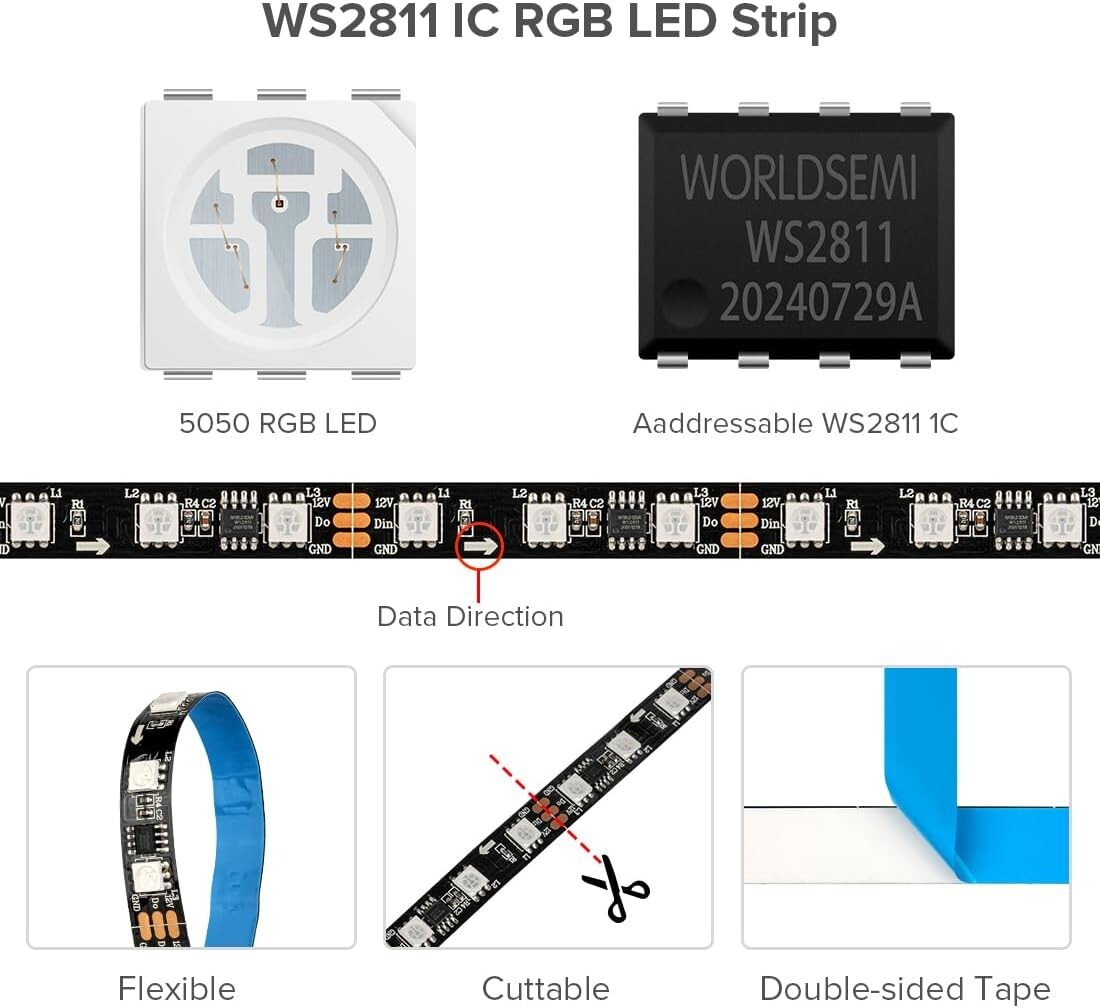 16.4FT Addressable RGB LED Strip with WS2811 IC Waterproof Flexible