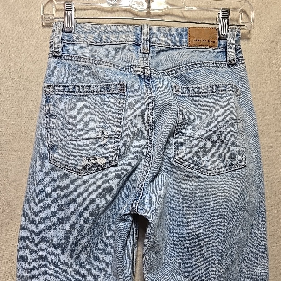 как выглядит American Eagle Mom Jeans 00 Distressed Light Wash Straight Leg 27 Inseam фото
