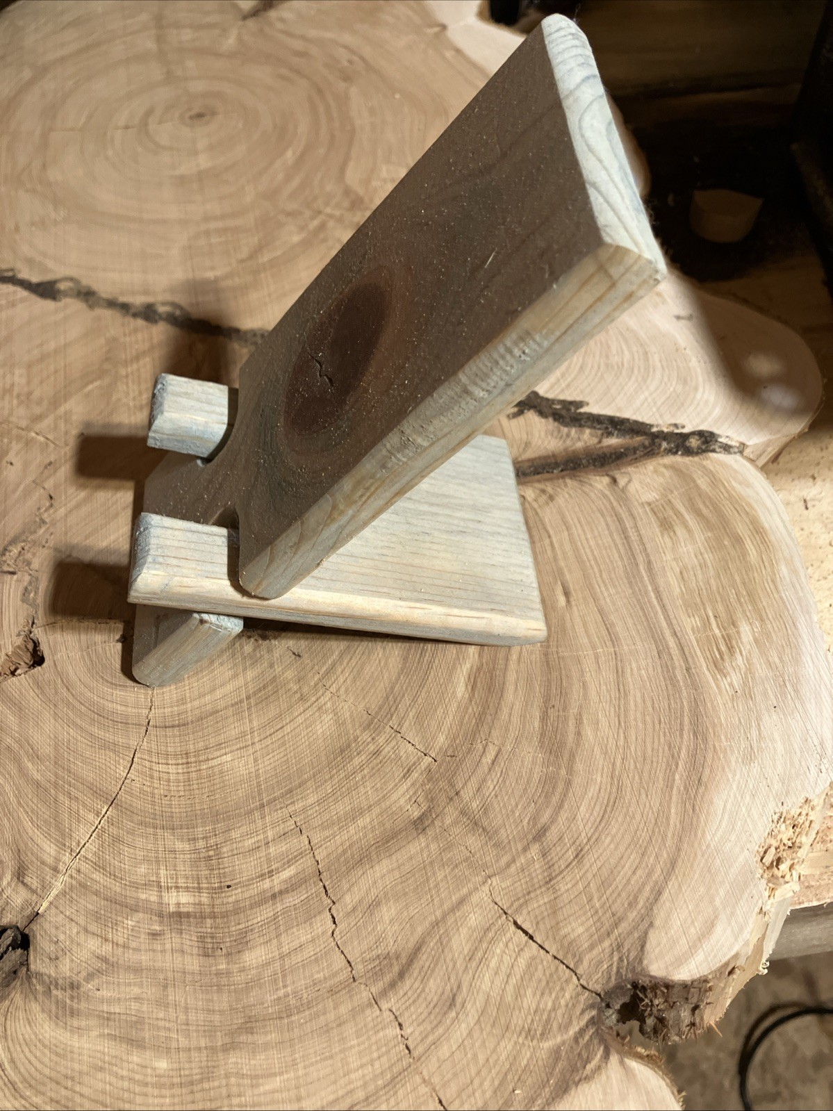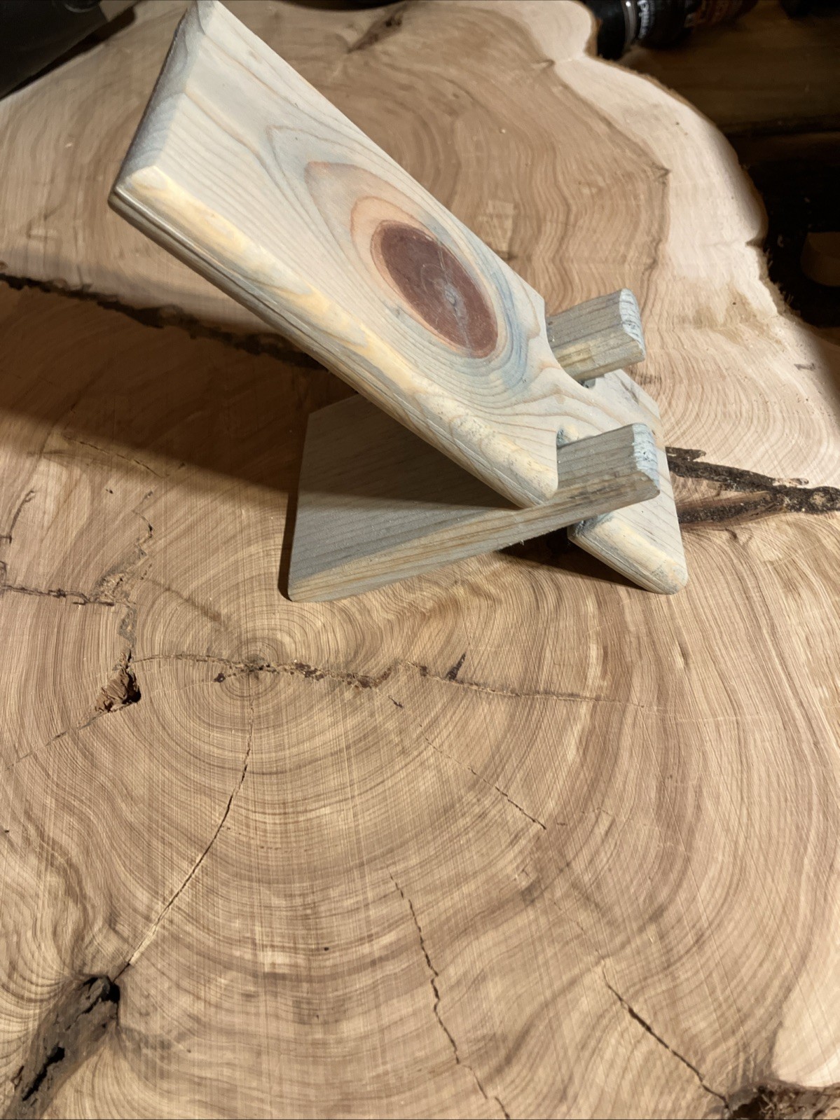 Hand Made Wooden Phone Holder With A Blue Pine Stain Finish