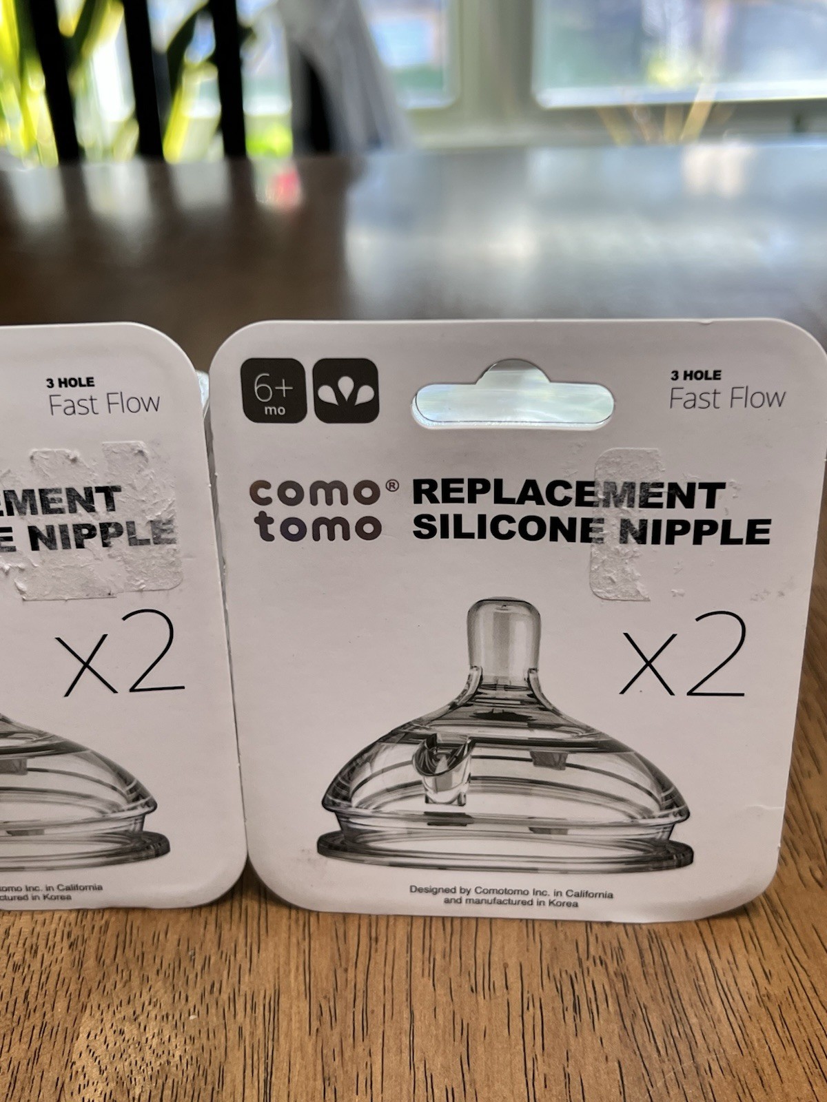 Como Tomo Replacement Baby Bottle Silicone Nipples 6 Months 3 Hole 2 Packs
