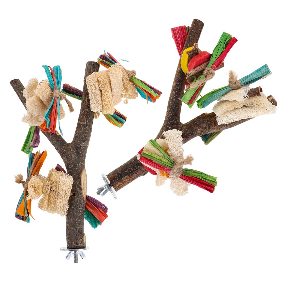 2pcs Natural Wood Parrot Stand Perch Bird Tree Branch Rest Platform For Cage