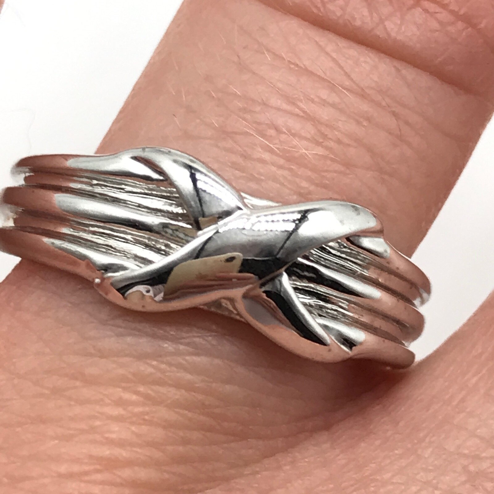 как выглядит 925 Sterling Silver Simple Shiny X Design Minimalistic Band Ring Size 8 фото