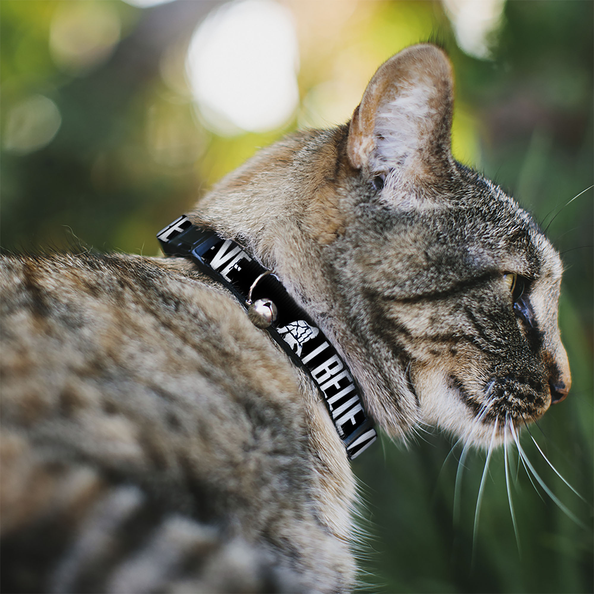 Title: Cat Collar Breakaway with Bell Bigfoot Silhouette I BELIEVE Black