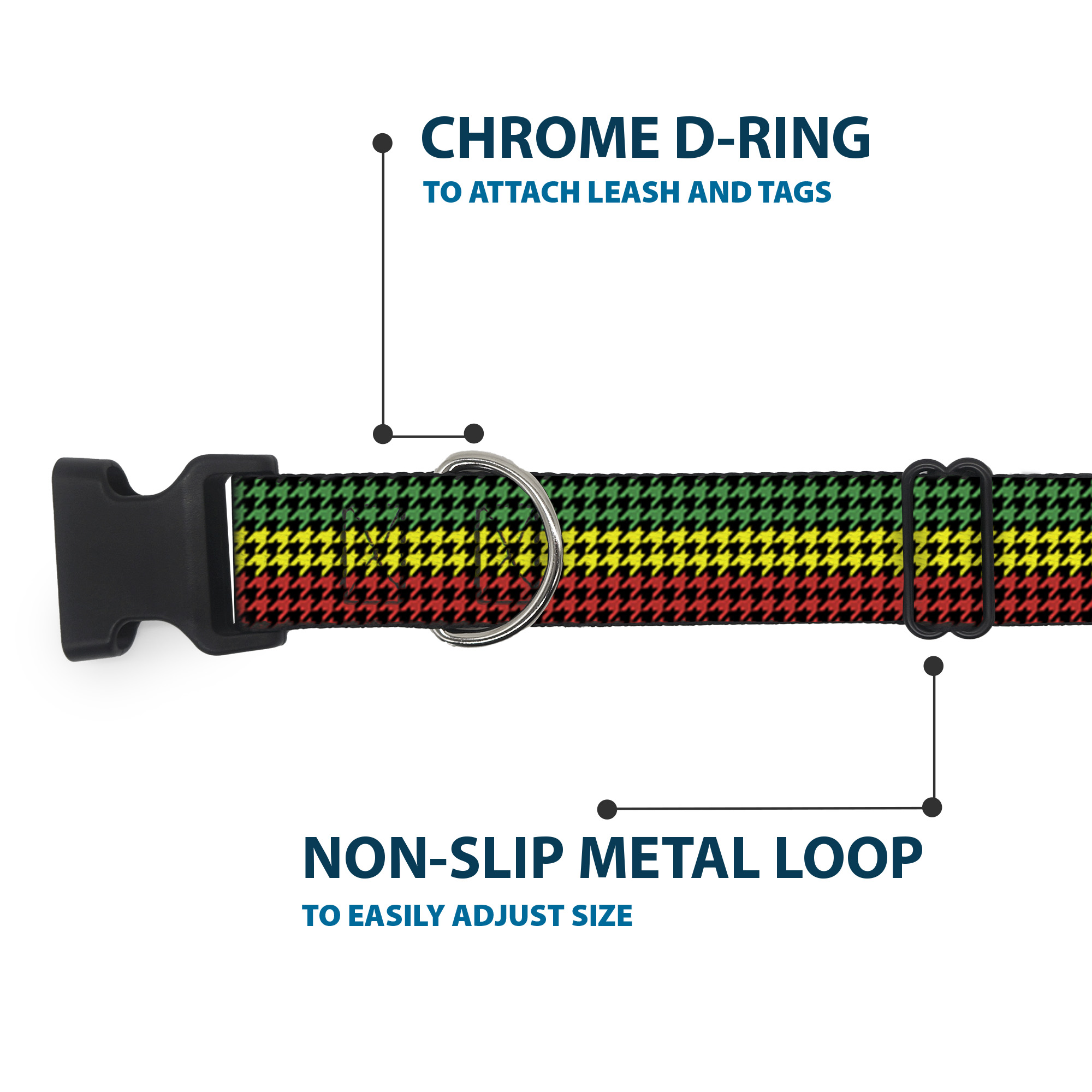 Title: Plastic Clip Collar Houndstooth Black/Rasta WIDE-Large 20-31"