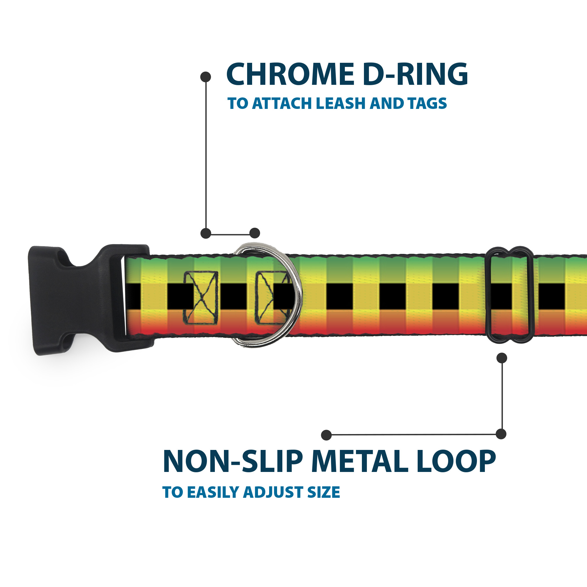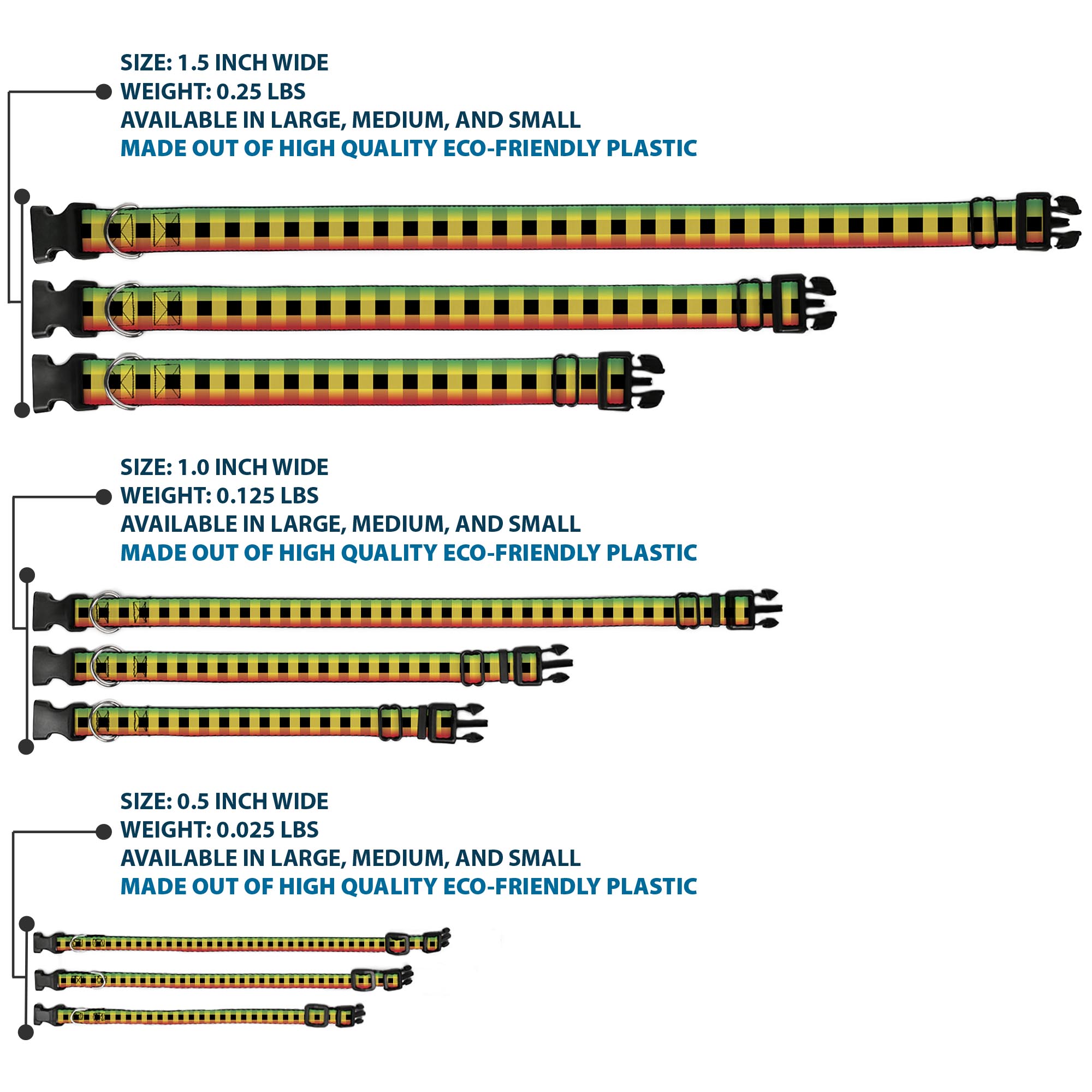 Title: Plastic Clip Collar Buffalo Plaid Rasta WIDE-Small 13-17"