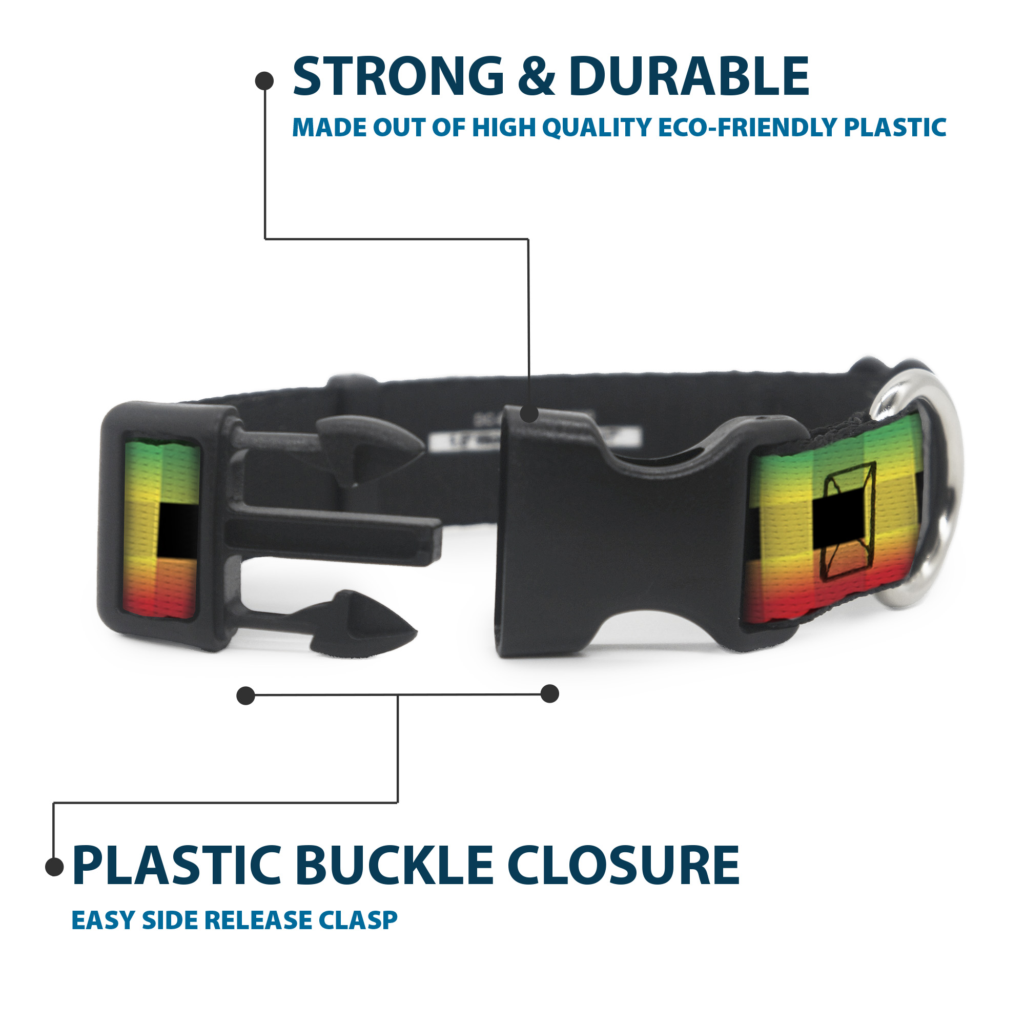 Plastic Clip Collar Buffalo Plaid Rasta WIDE-Small 13-17
