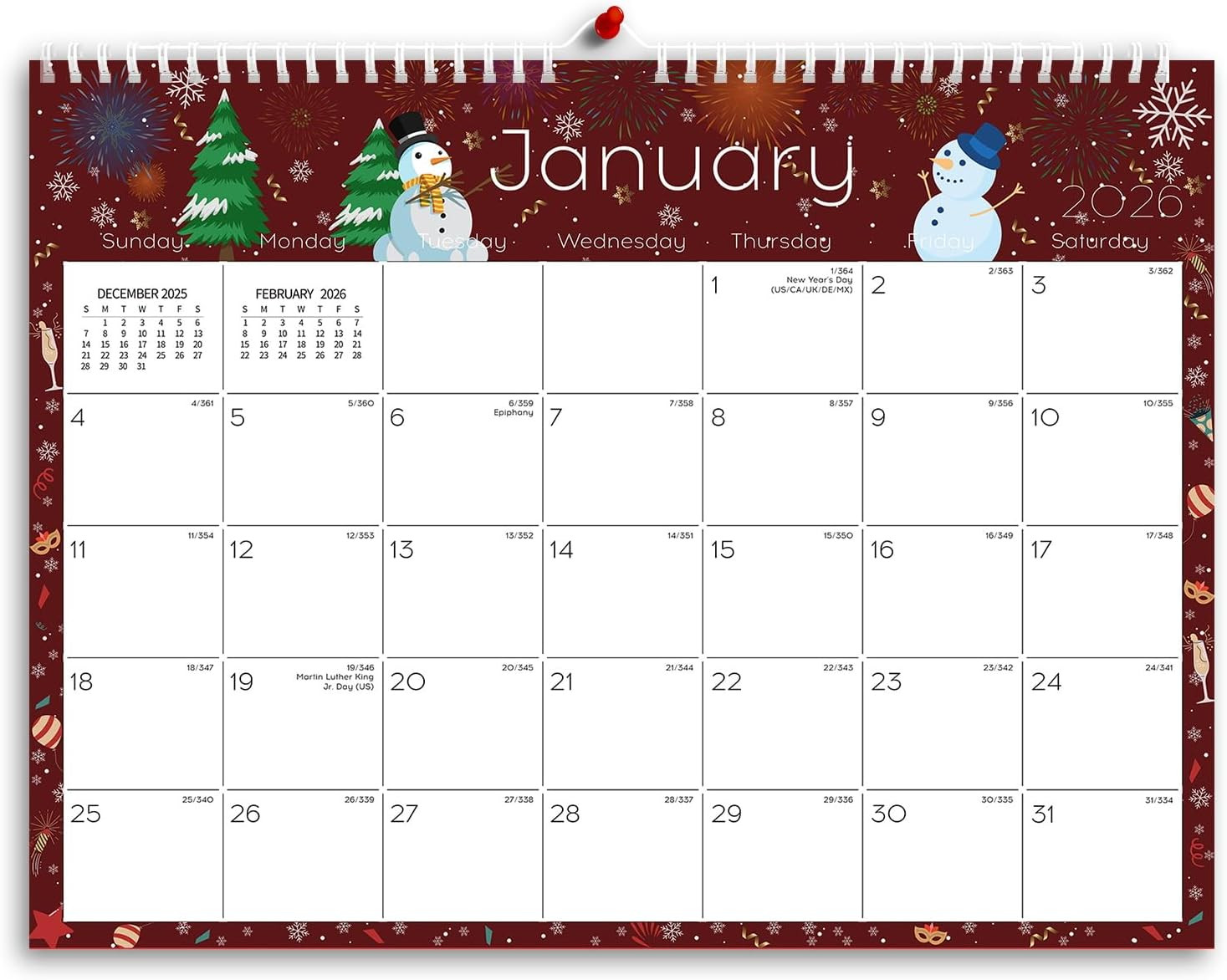 Wall Calendar 2026-2027,11 14, 18 Months from JAN. 2026 to JUN. 2027, Spiral B