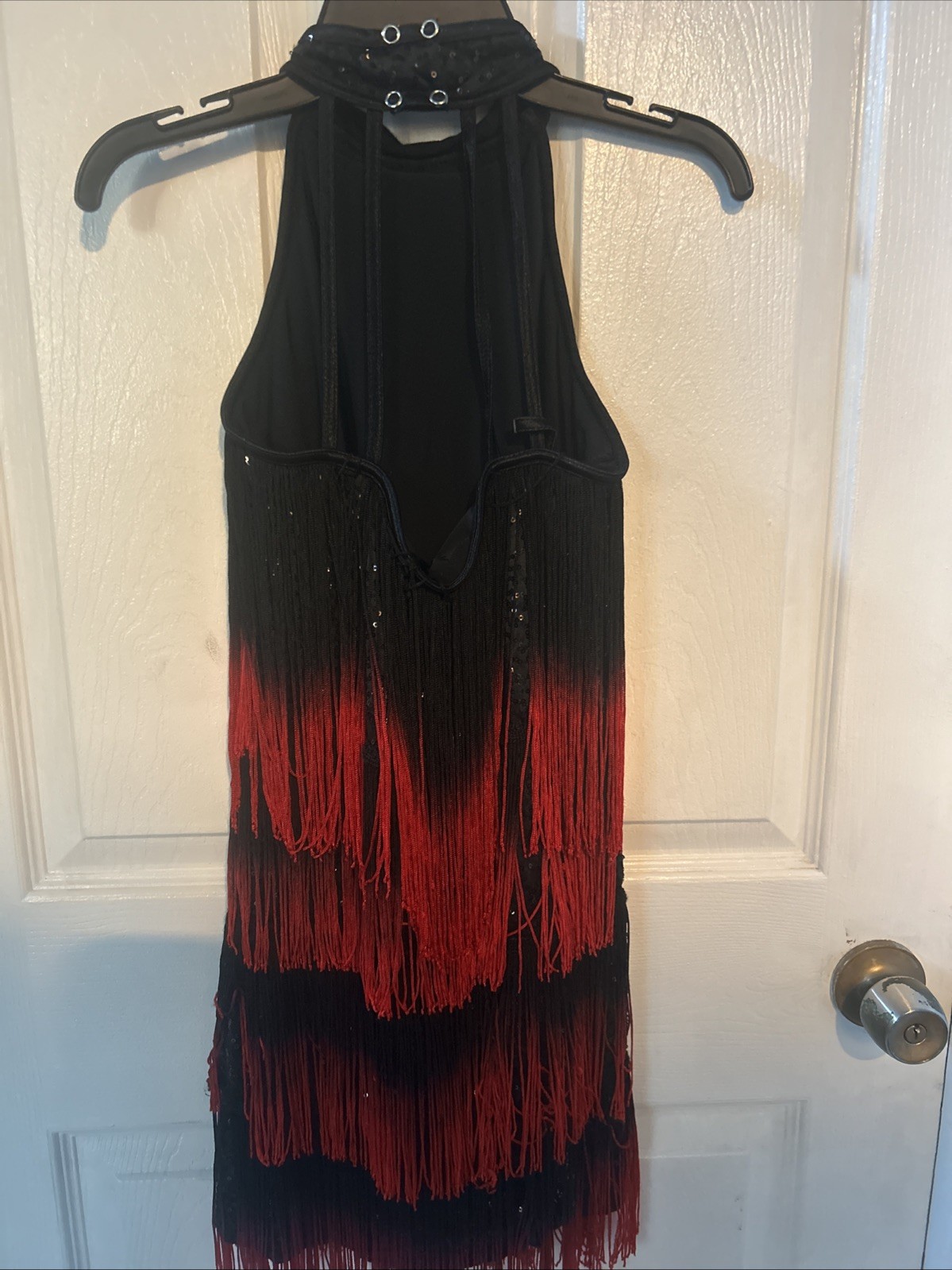 Weissman Girls Dance Costume Size MC Red Black Sequin Halter Dress Jazz Tap