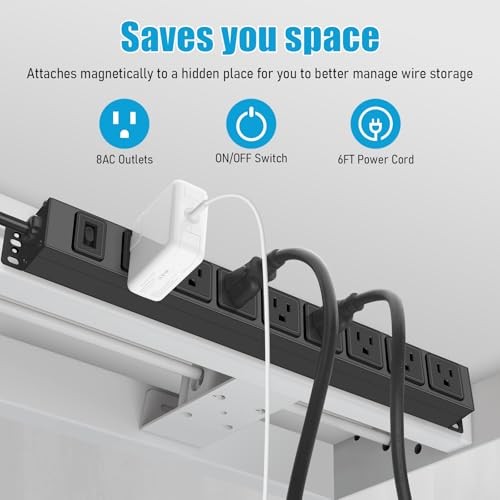 Magnetic Mount Power Strip, 8 Outlet Mountable Socket, Metal Heavy 6FT 1 Pack