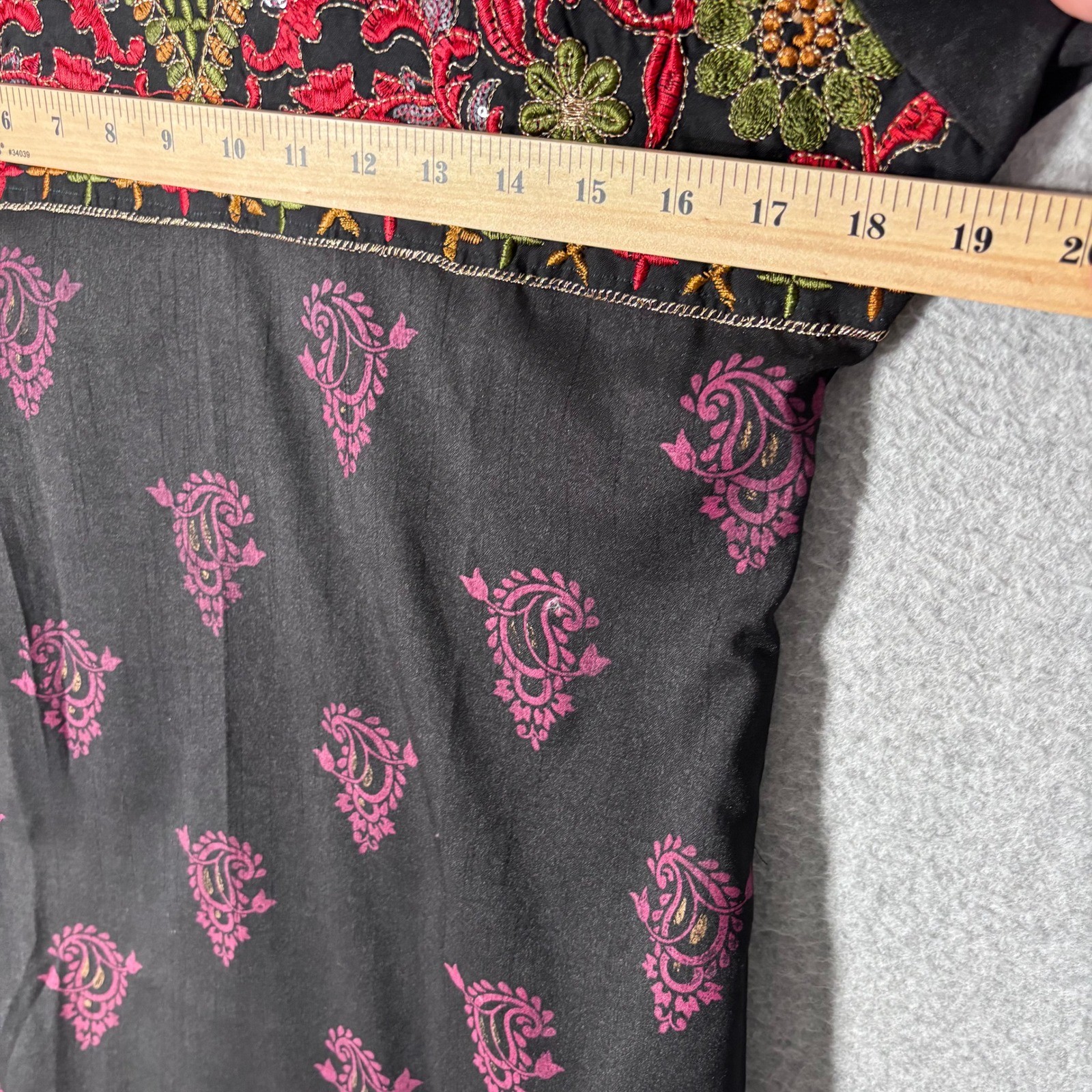 Paisley Embroidered Kurti Tunic Top Size 40 US Medium Indian Ethnic Modest Thin