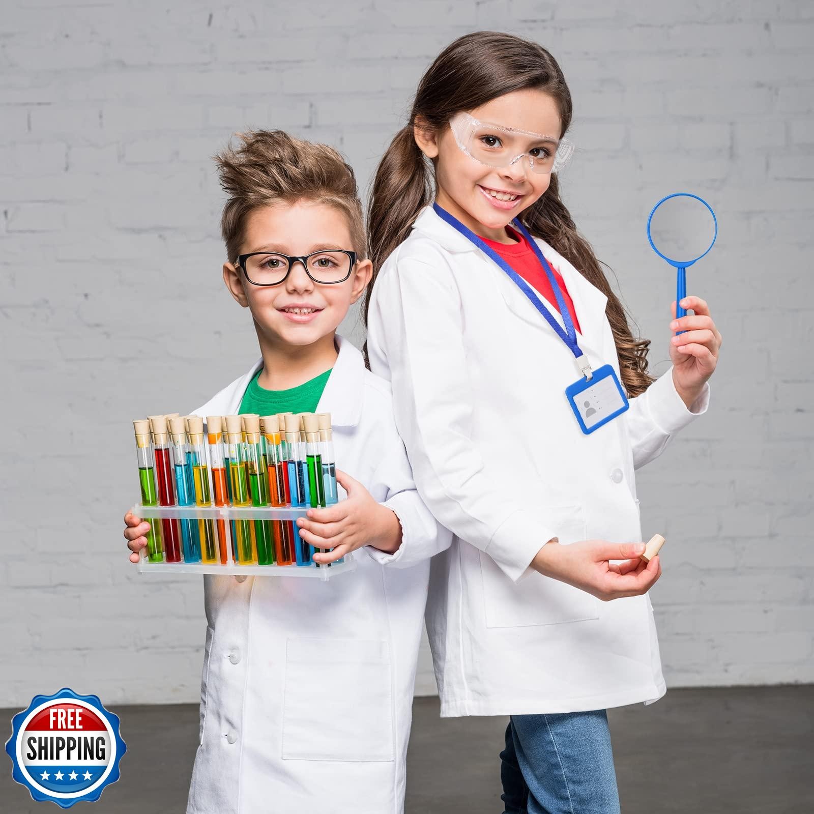 Tarpop 16 Pcs Lab Coat Costume Kit for Kids Doctor Coat Glasses ID Card for P
