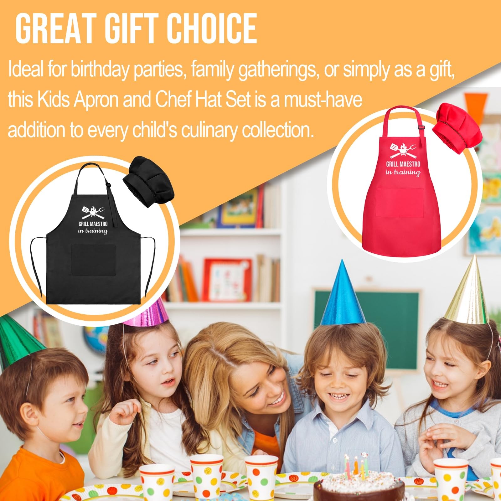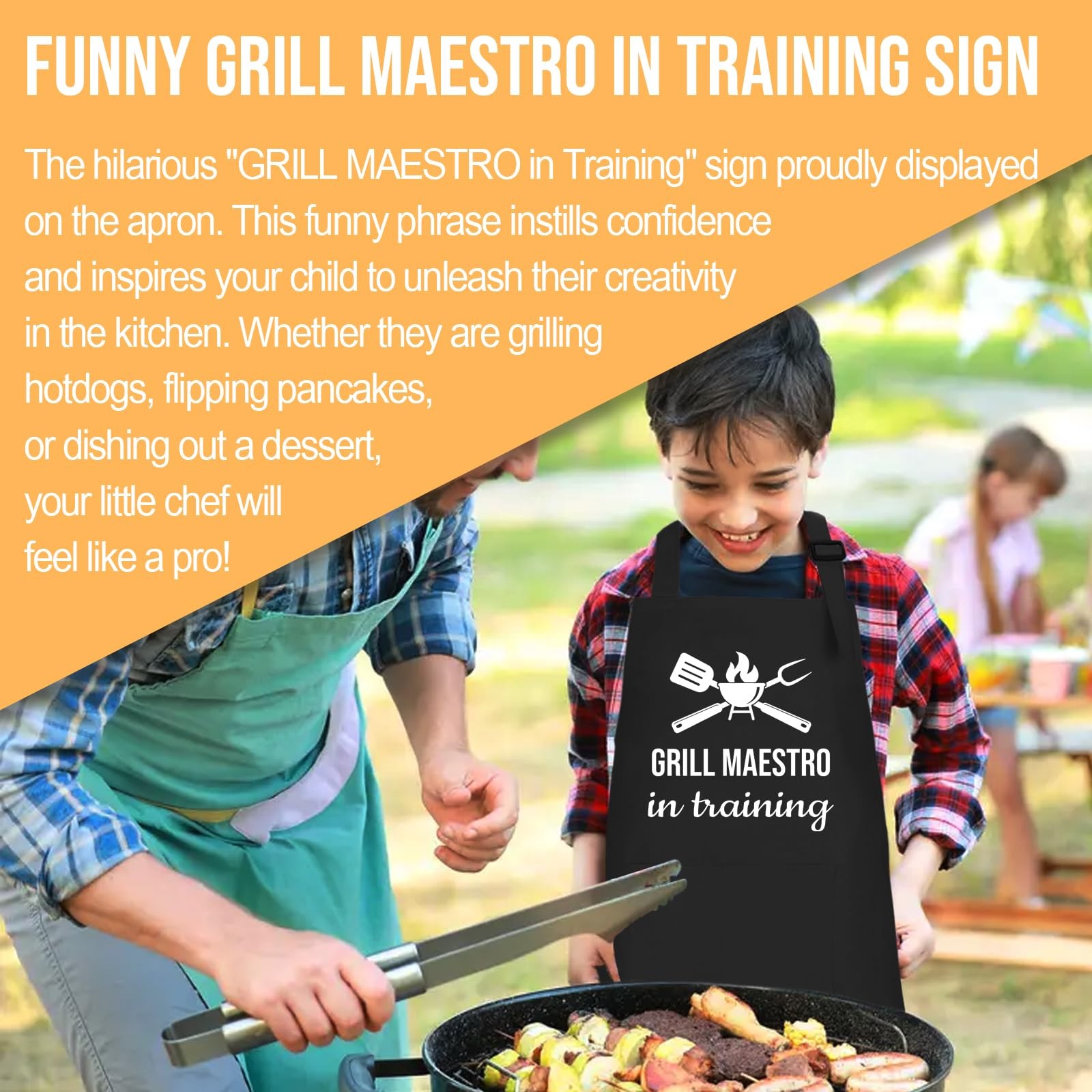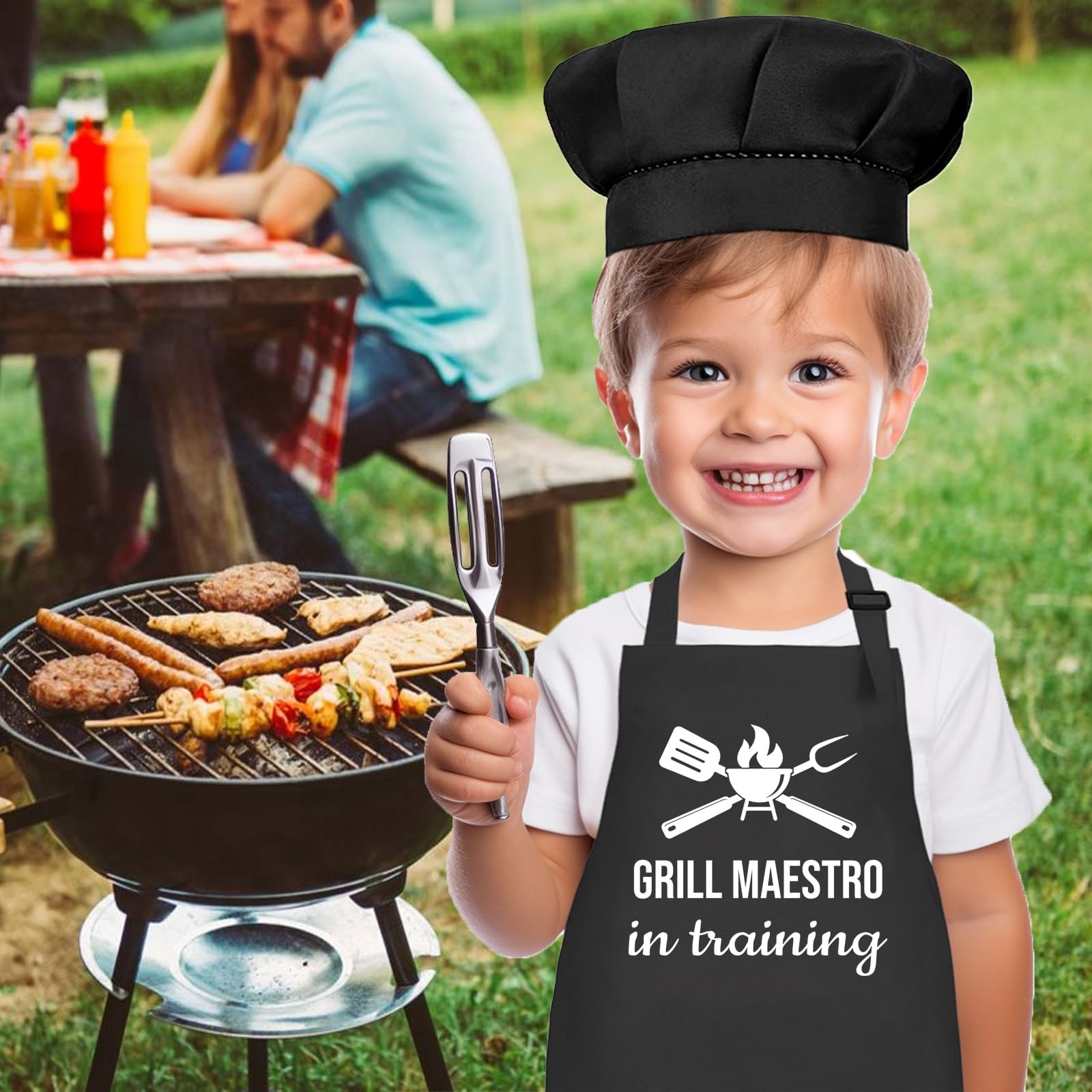 Kids Apron and Chef Hat Set, Grill Maestro in Training Funny Child Apron with...